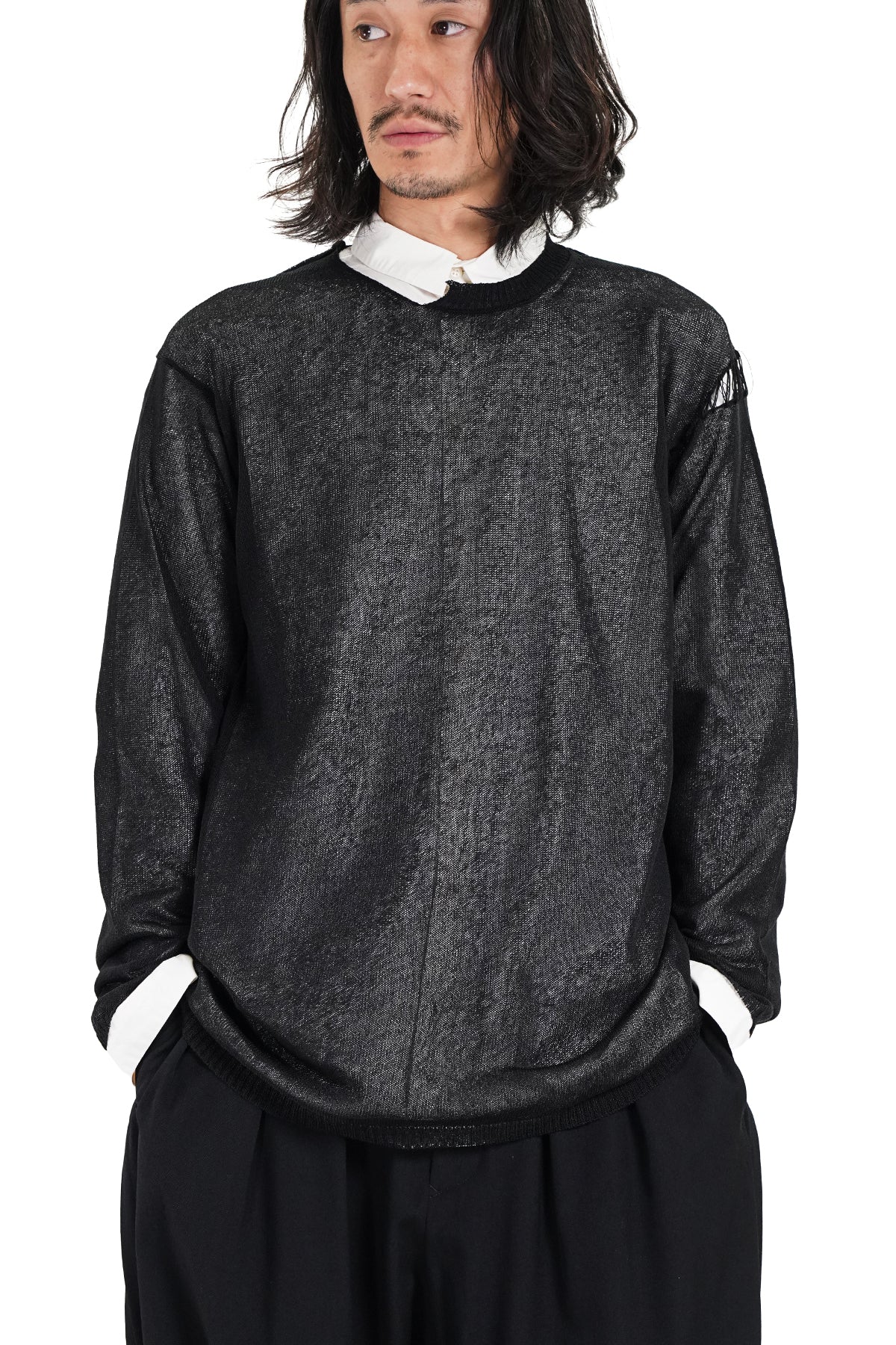 - CREW NECK PULLOVER WITH EMBROIDERED YARN KNIT