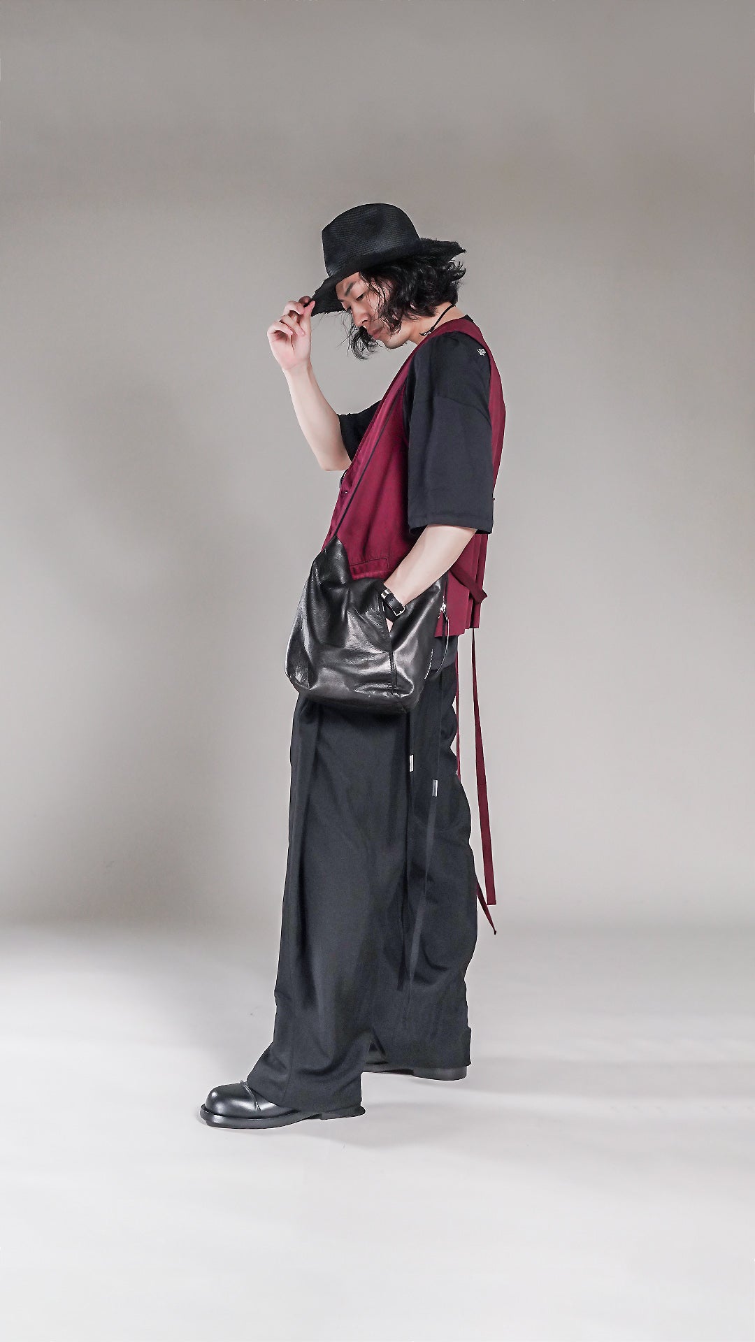 SIZE 44=ウエスト幅35.5cm-股上35.5cm-股下86cm-渡り幅34cm-裾幅26cm-総丈125cm