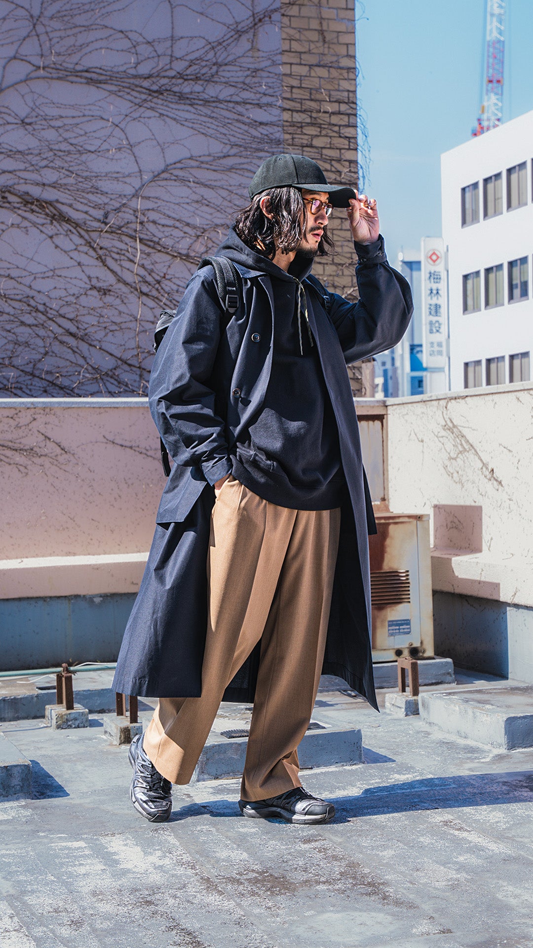 ハリ感のある生地によって立体なフォルムでありながら、 軽い着用感のコートになっています。