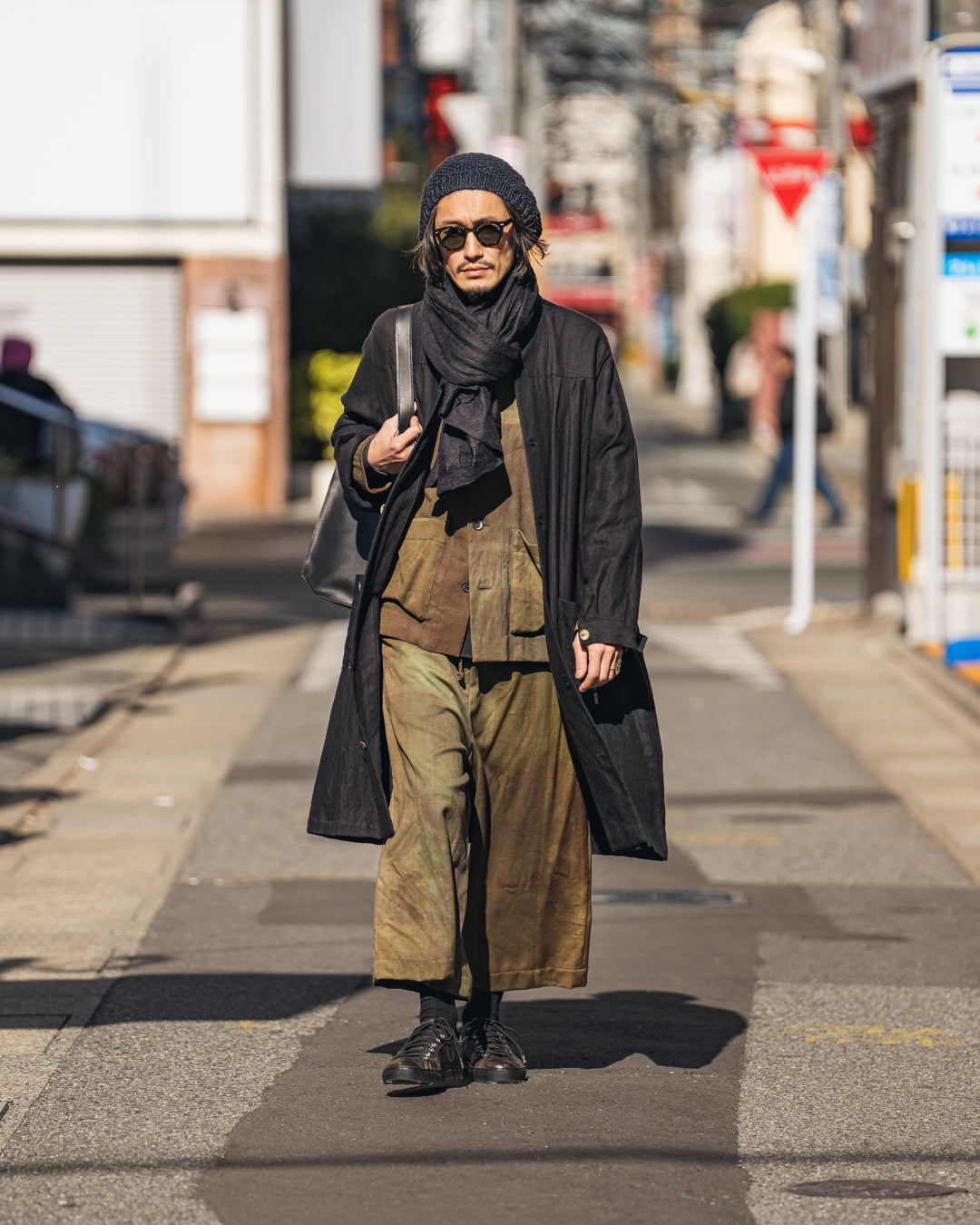 日本の歴史ある機屋(生地屋)に眠っていたアーカイブの生地を、デザイナーであるビーク本人が一点一点染色を施し、洋服として仕上げたアイテムです。