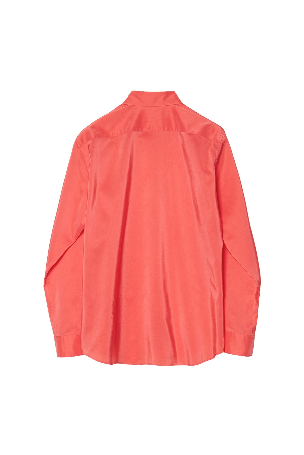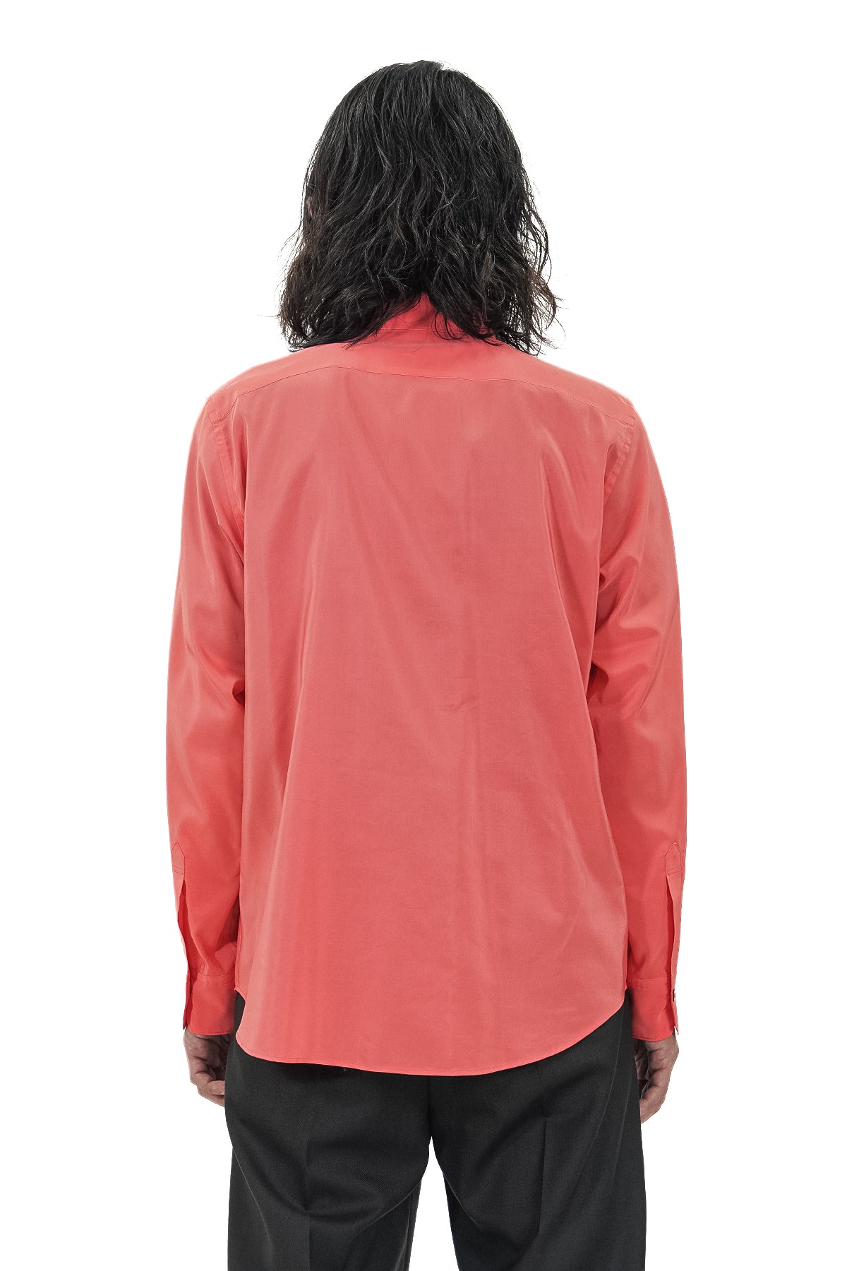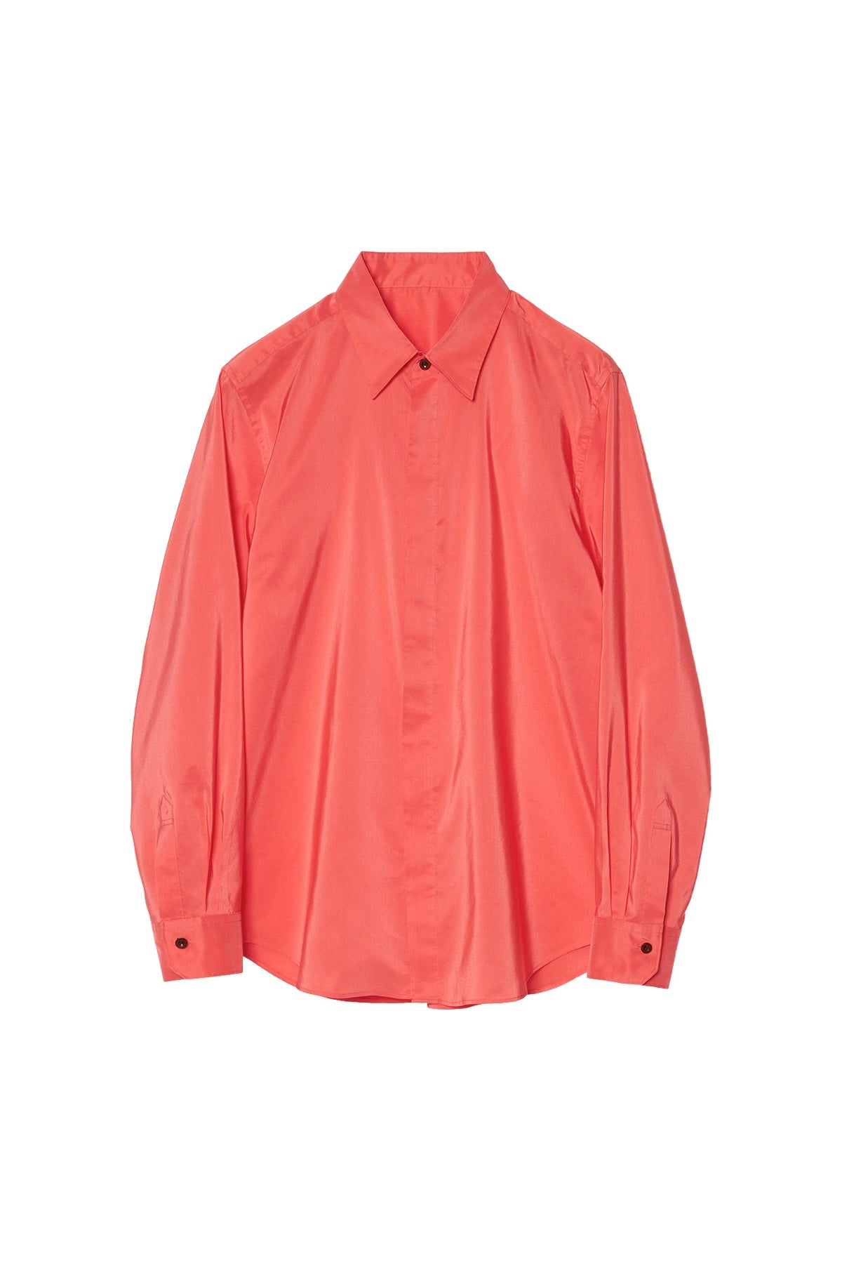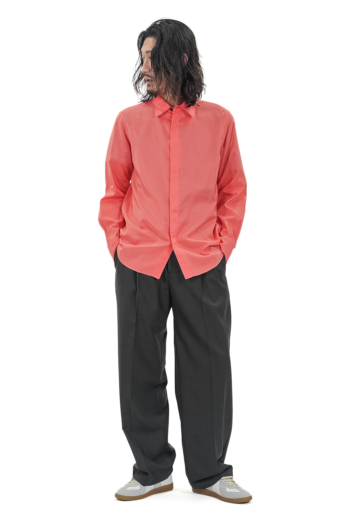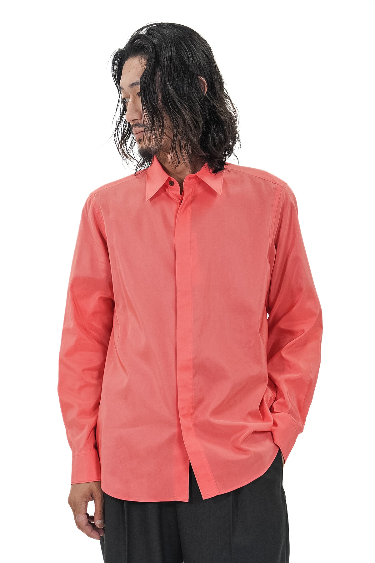コットンシルク素材を使用した、 レギュラーカラーの比翼あきシャツ。