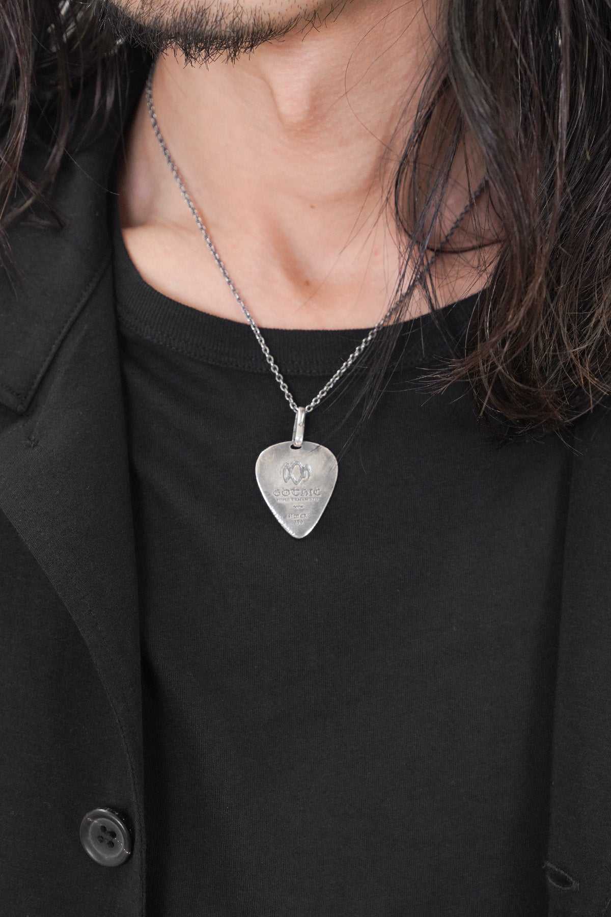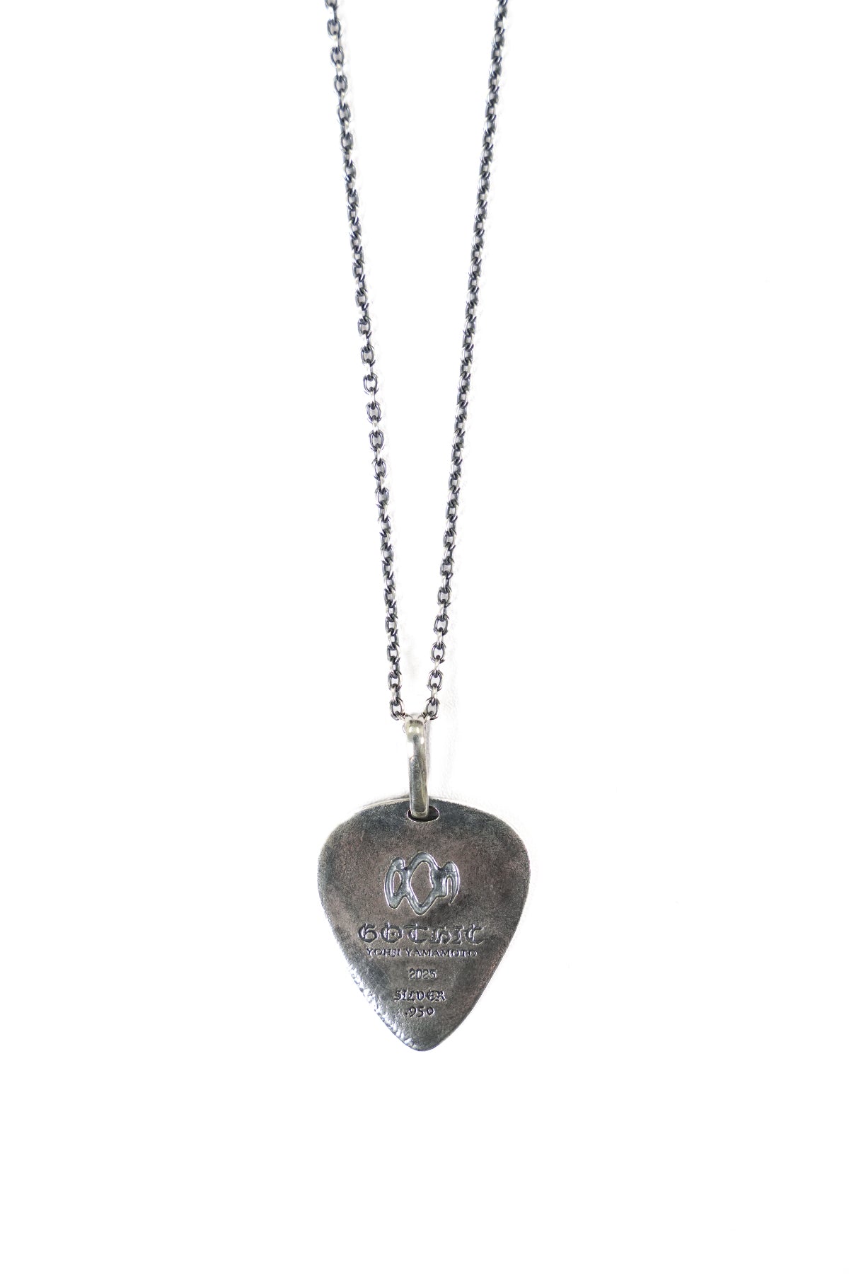 ギターピック型にYohji YamamotoのシグニチャーとGOTHICロゴを彫刻したリバーシブルペンダントです。