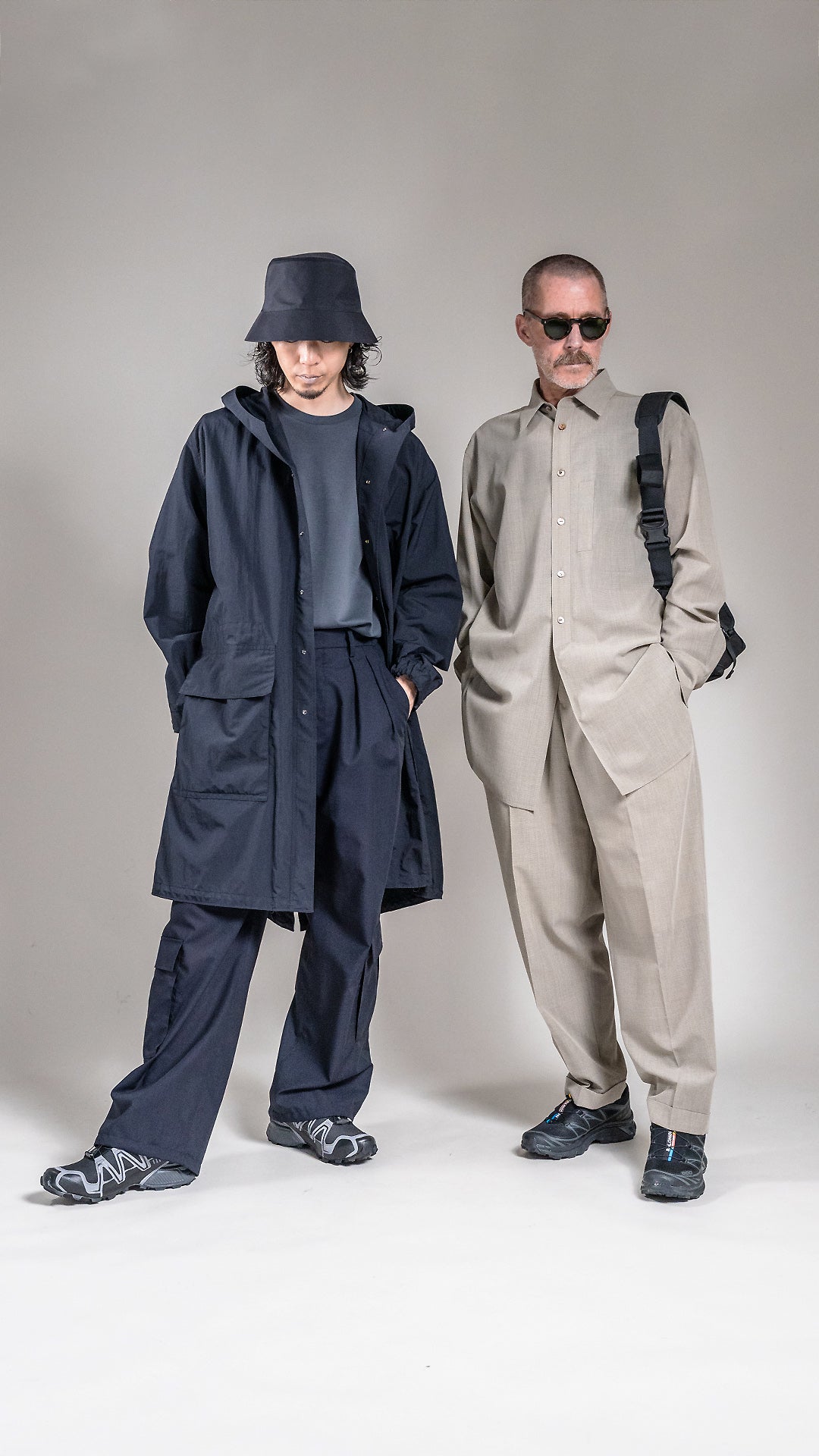 袖口は調整できるゴム仕様のタブになっていて、 ウエストと裾にはドローコードが配置され、シルエットを調整頂けます。