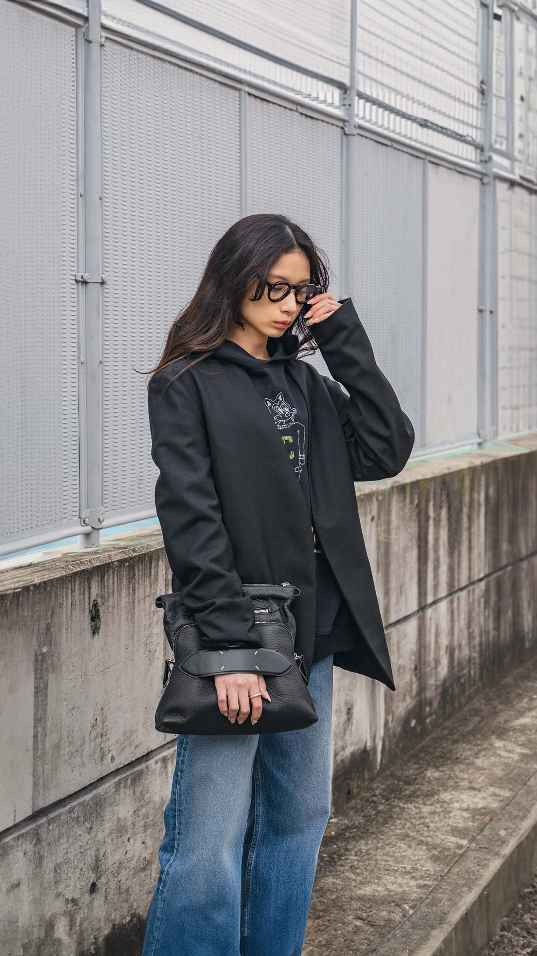 SIZE : M=肩幅61cm-身幅62cm-着丈55cm-袖丈63cm