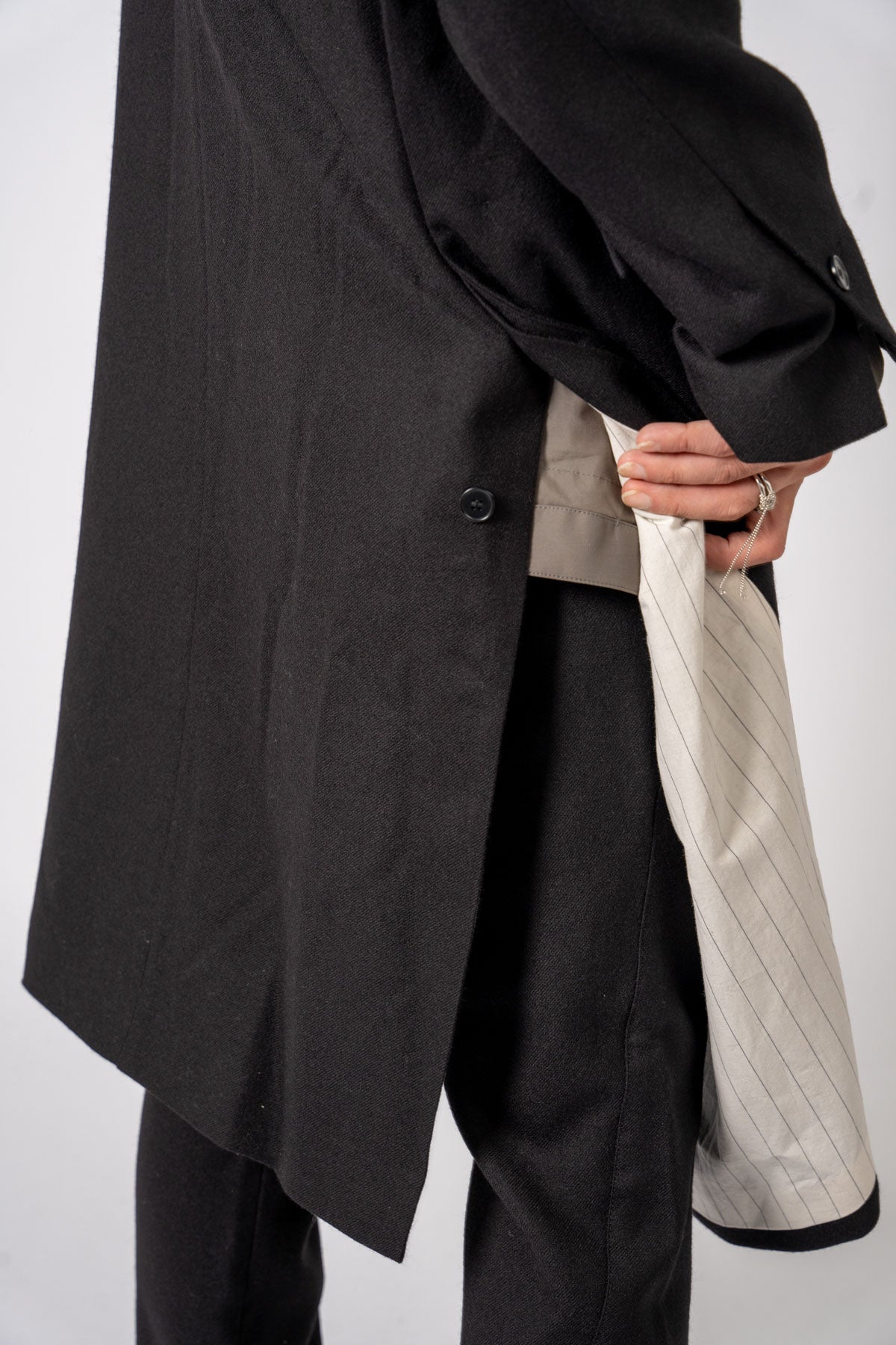 SIZE :46=肩幅47cm-身幅53cm-袖丈62cm-着丈106cm