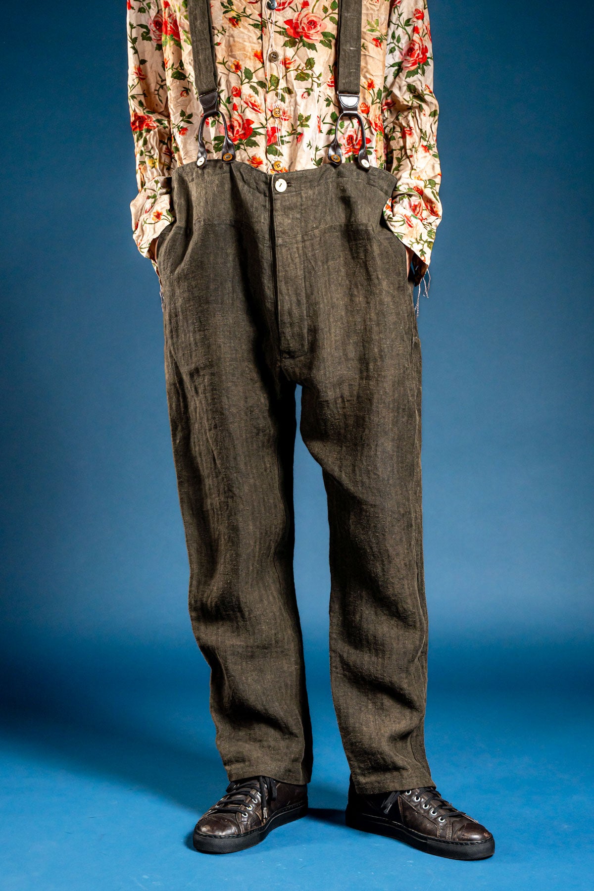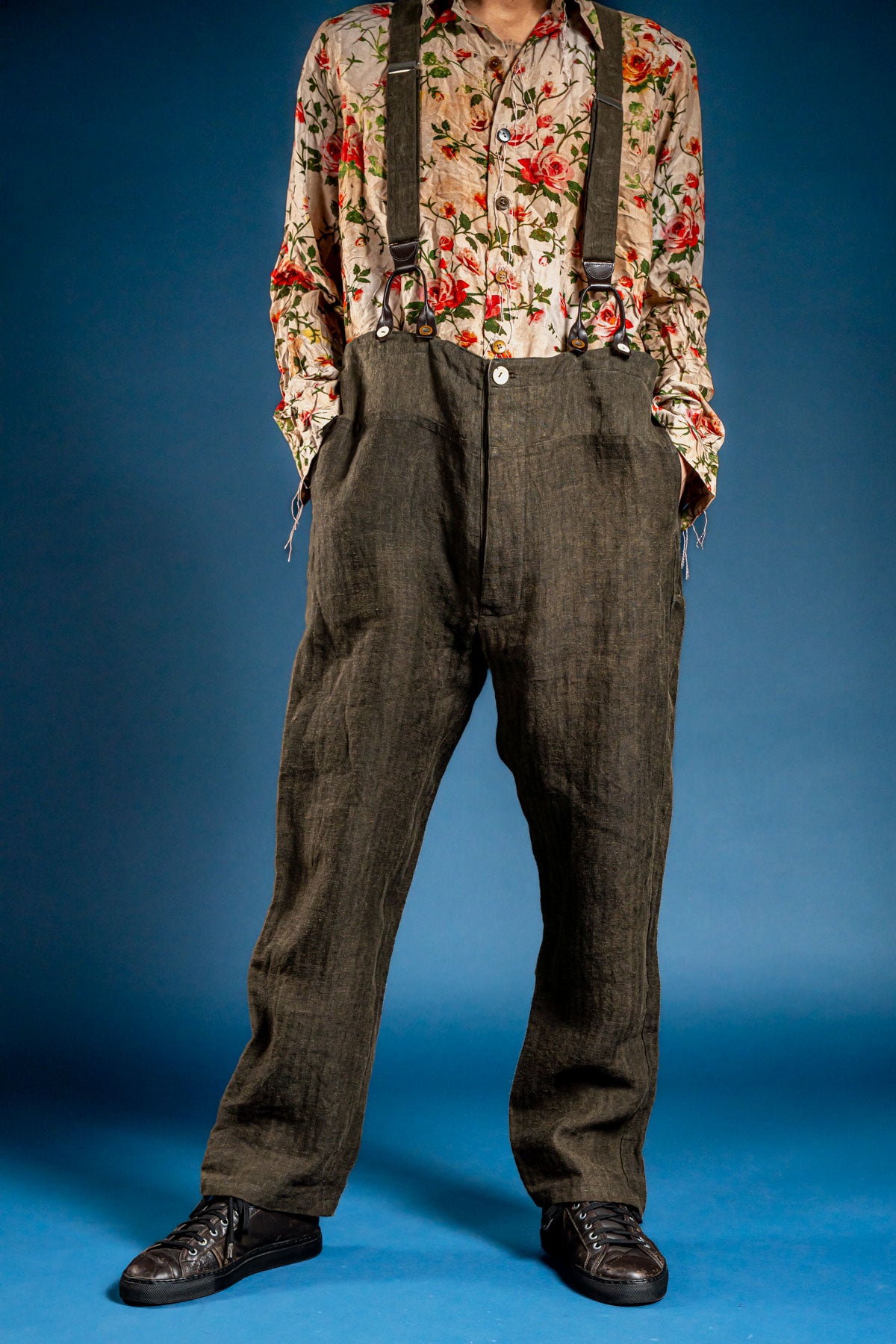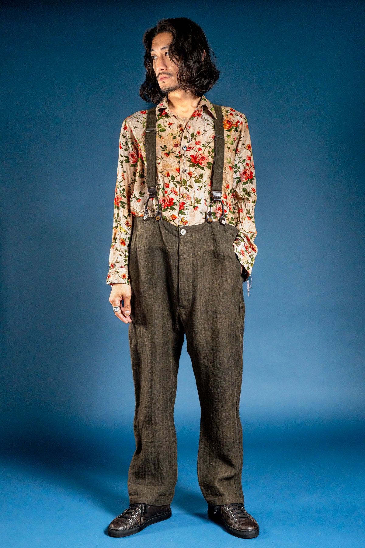 SIZE : 46=ウエスト幅45cm-股上38cm-股下69cm-渡り幅32cm-総丈104cm-裾幅21.5cm