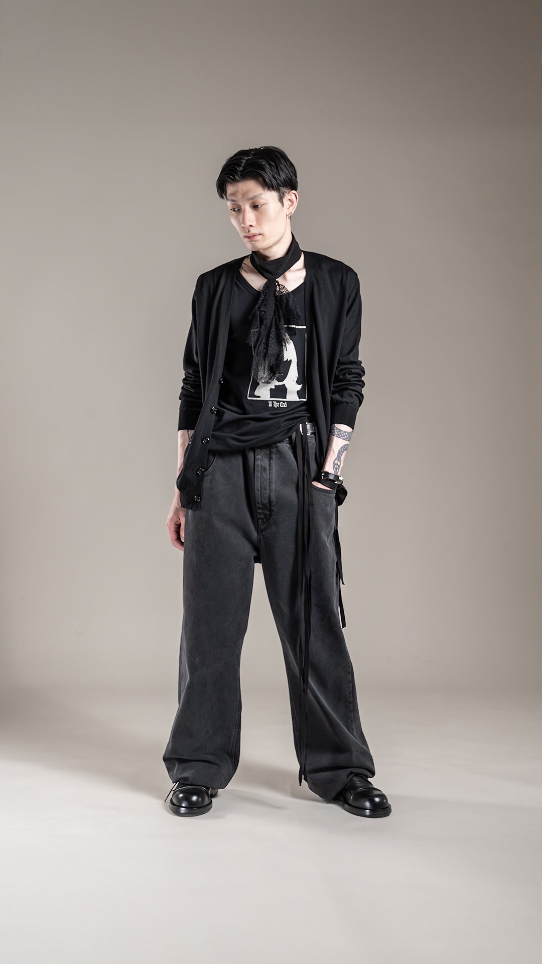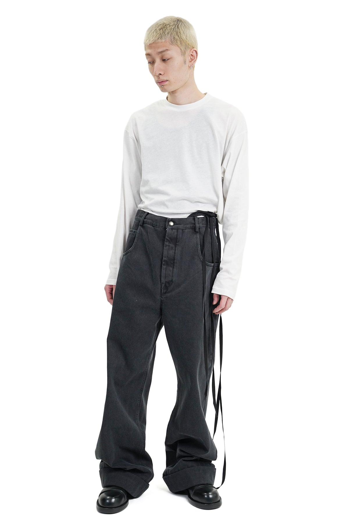 SIZE : 44=ウエスト幅41cm-股上44cm-股下80cm-渡り幅35.5cm-裾幅28cm-総丈118cm