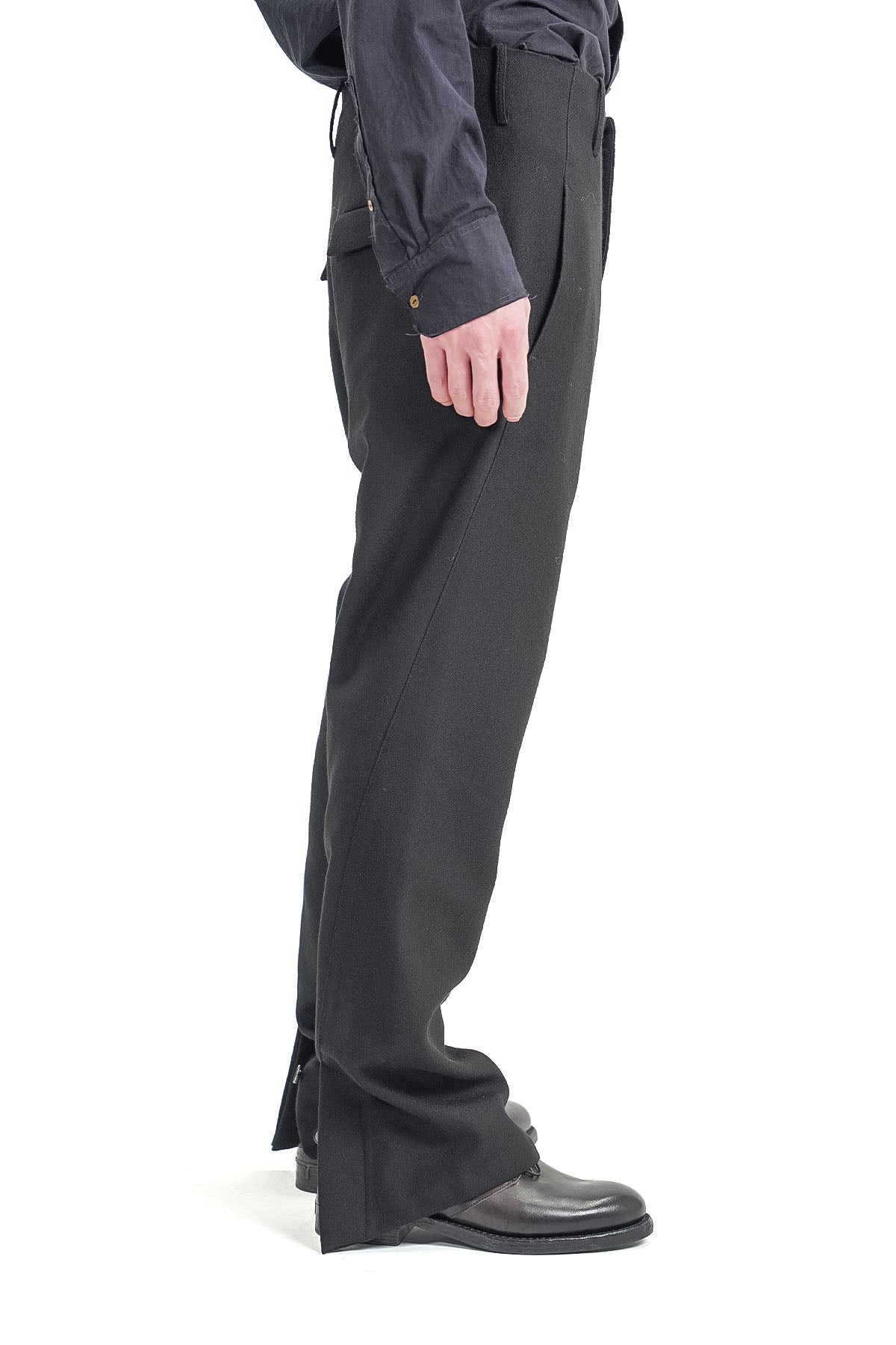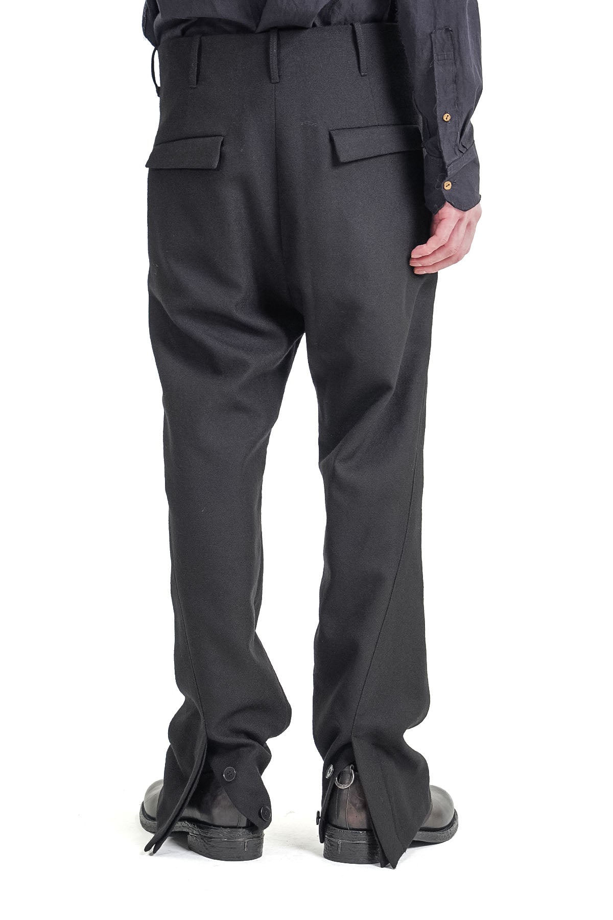 SIZE : 46=ウエスト幅42cm-股上40cm-股下71cm-渡り幅26cm-裾幅20cm-総丈101cm