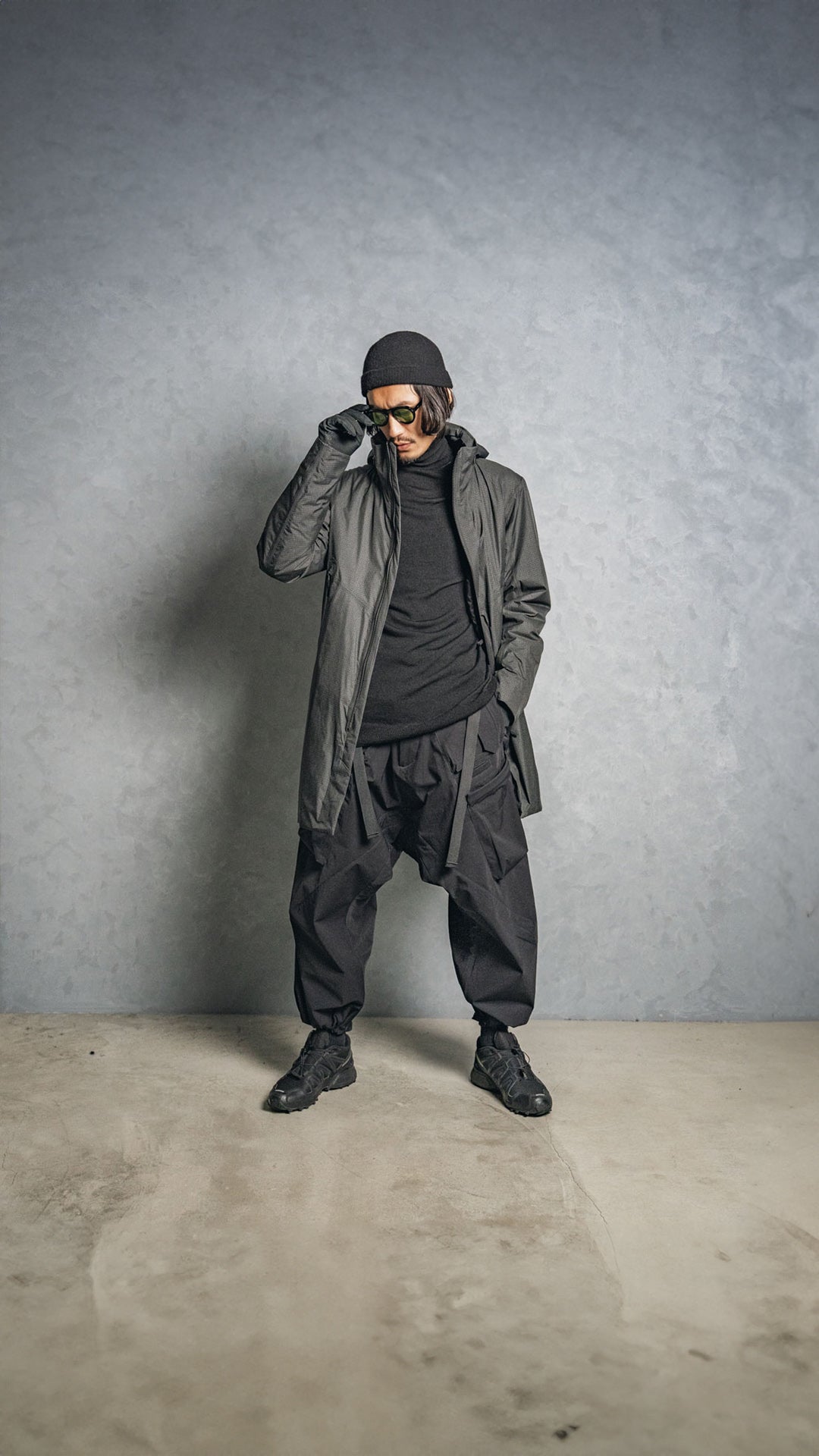 SIZE : XS=肩幅47cm-身幅56cm-袖丈64cm-着丈94cm