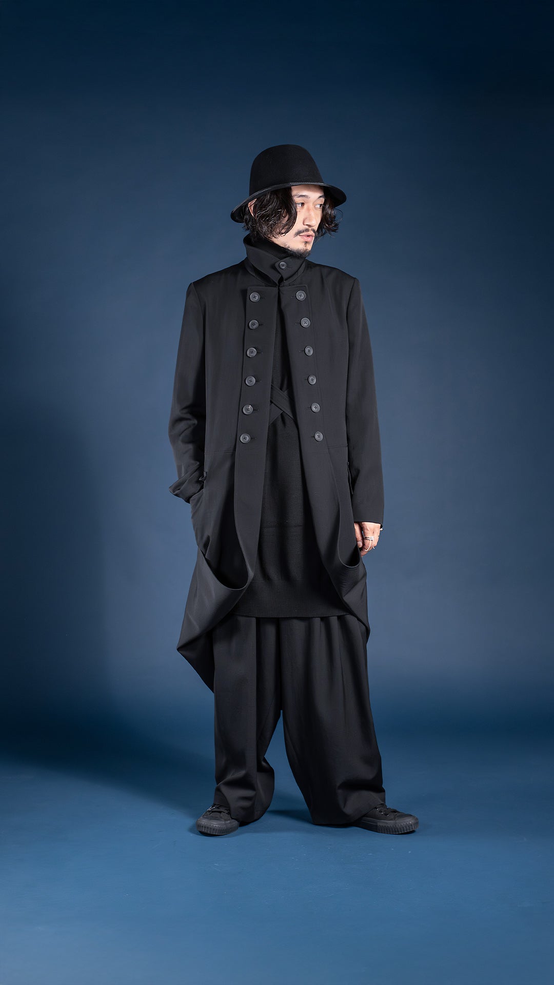 WOOL GABARDINE NAPOLEON LONG JACKET