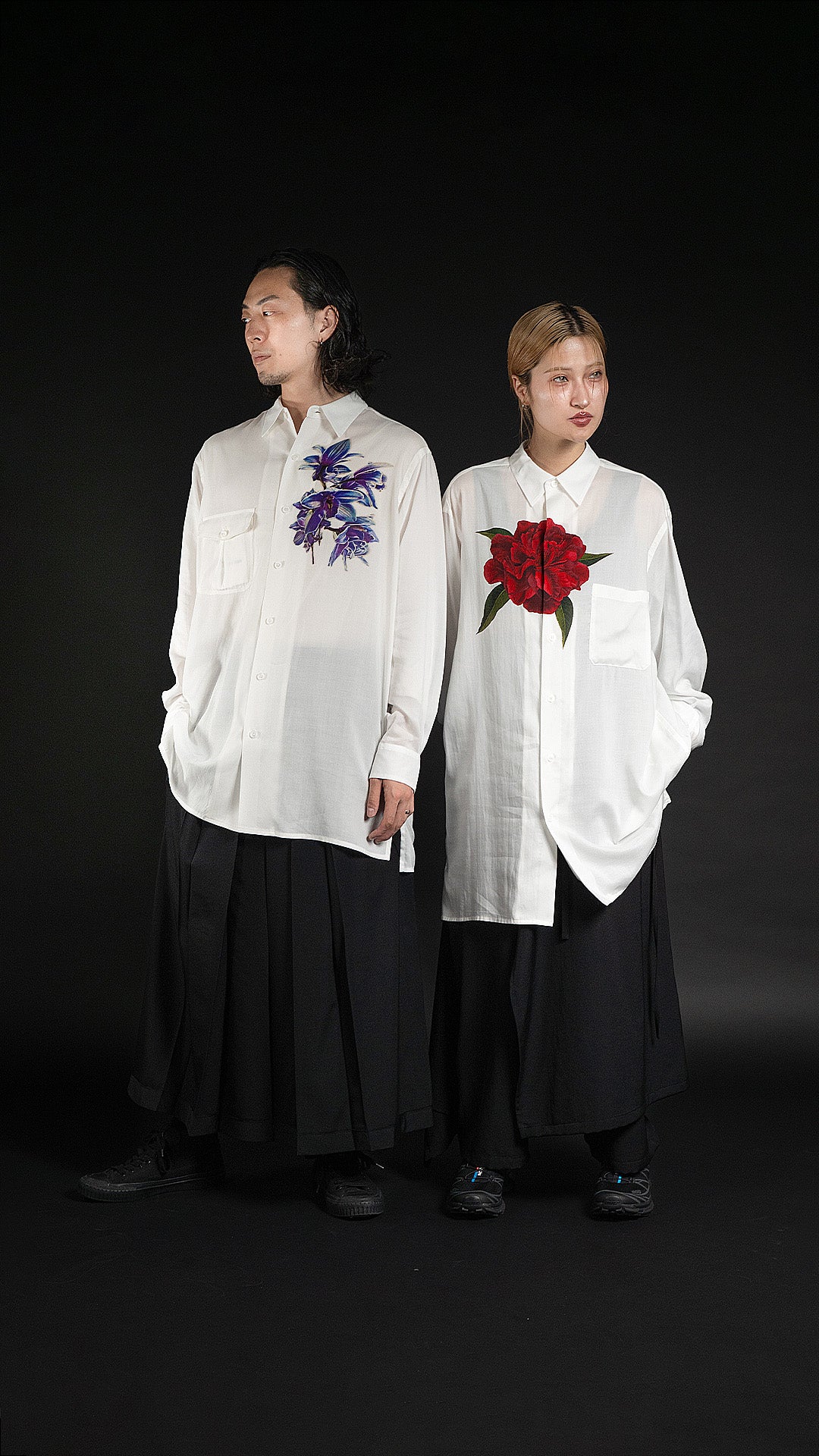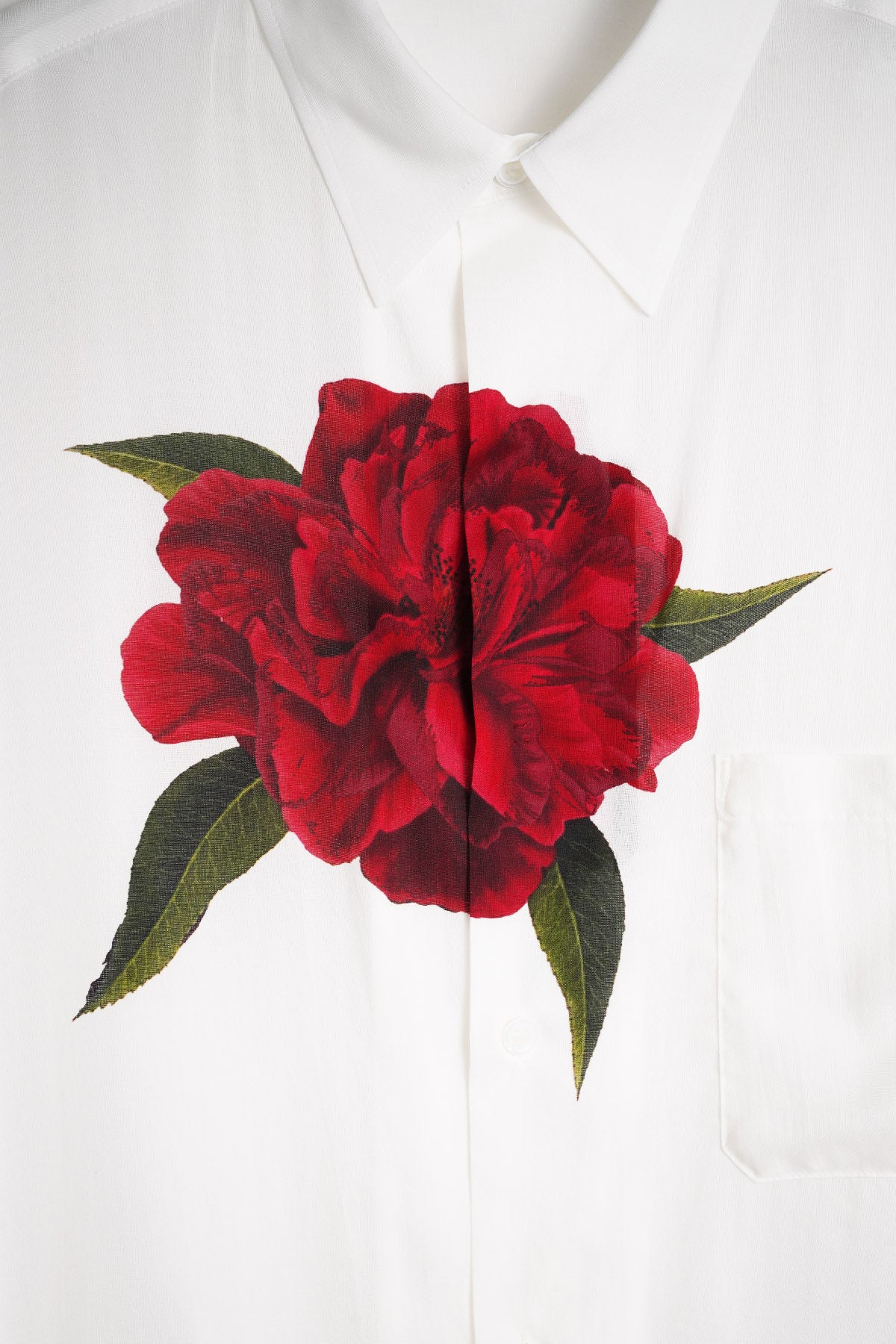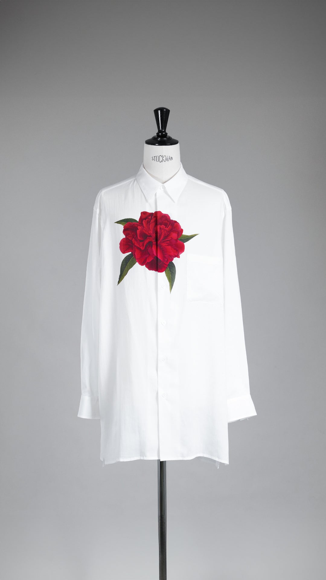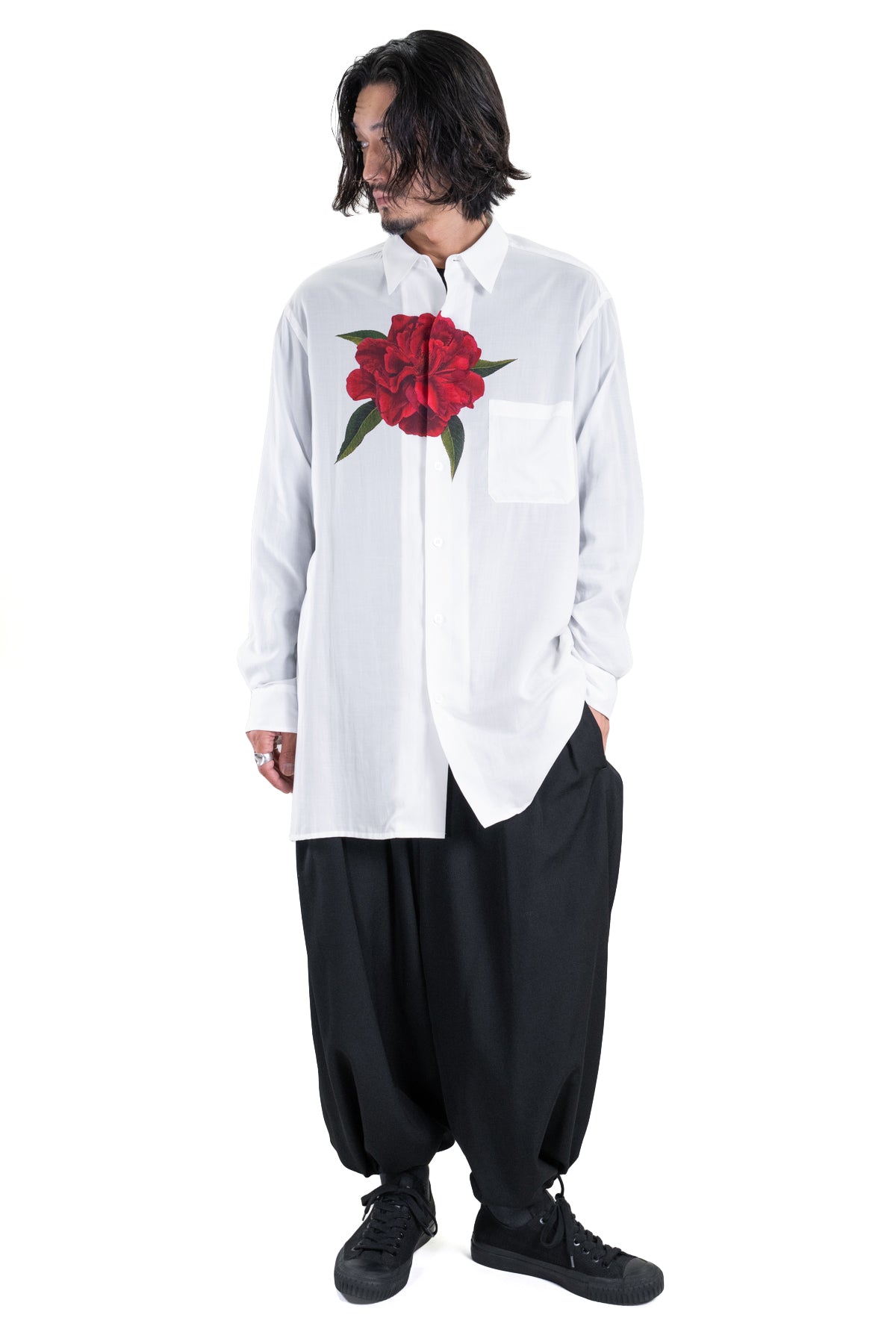 REGULAR COLLAR SHIRT WITH RED FLOWER PRINT