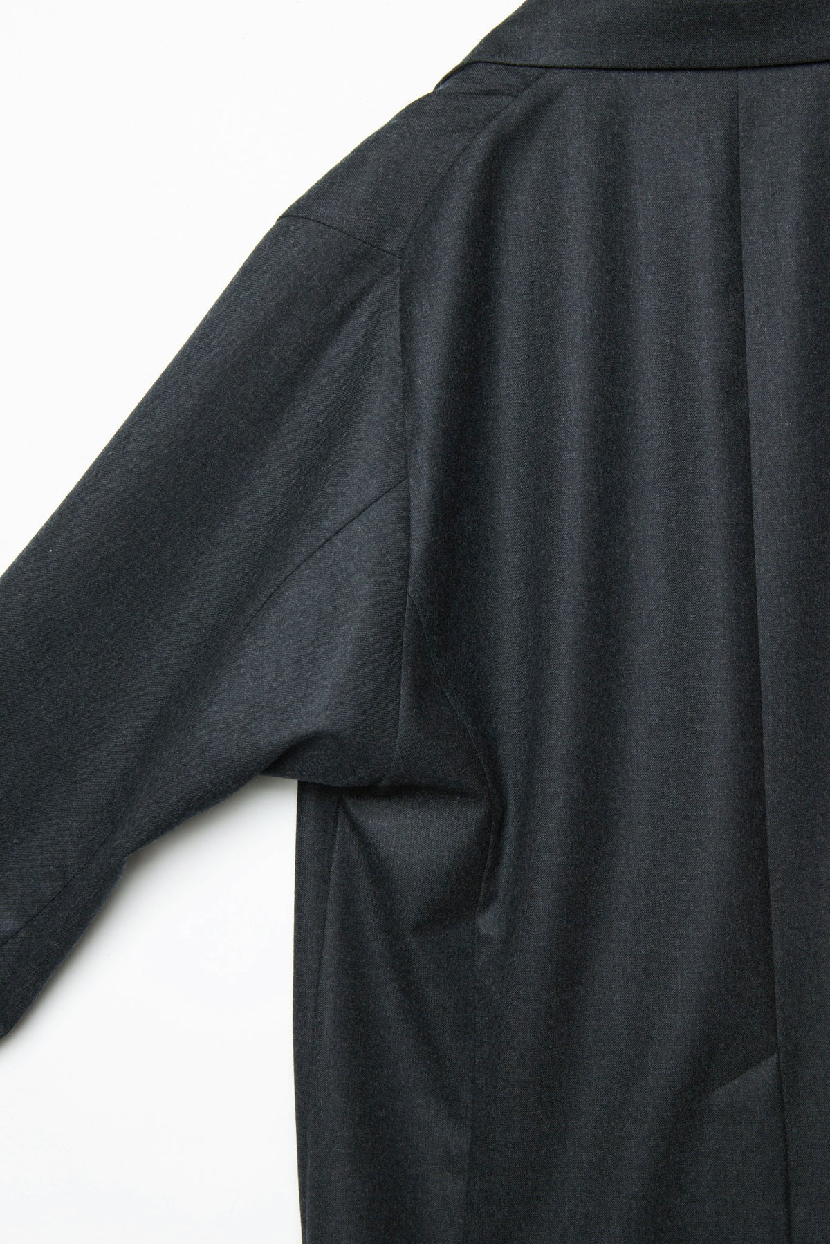 やや⾧めのクラシックな着丈に、あえてリラックスした袖を、特殊なパターン設計で付けることで、肩周りには柔らかさを持たせた設計になっています。