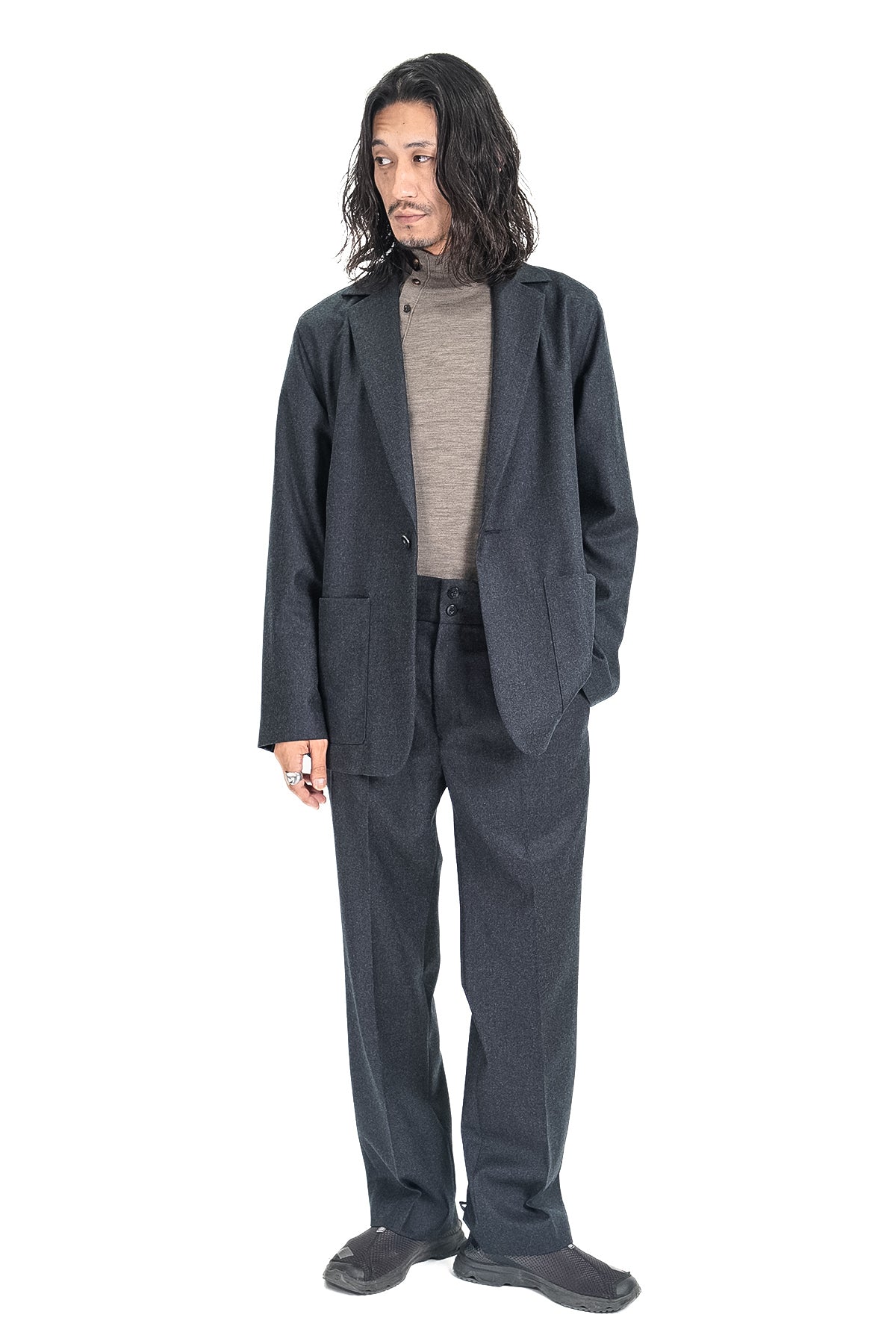 ウールフラノ素材を使用した、 一重仕立てのリラックスジャケット。