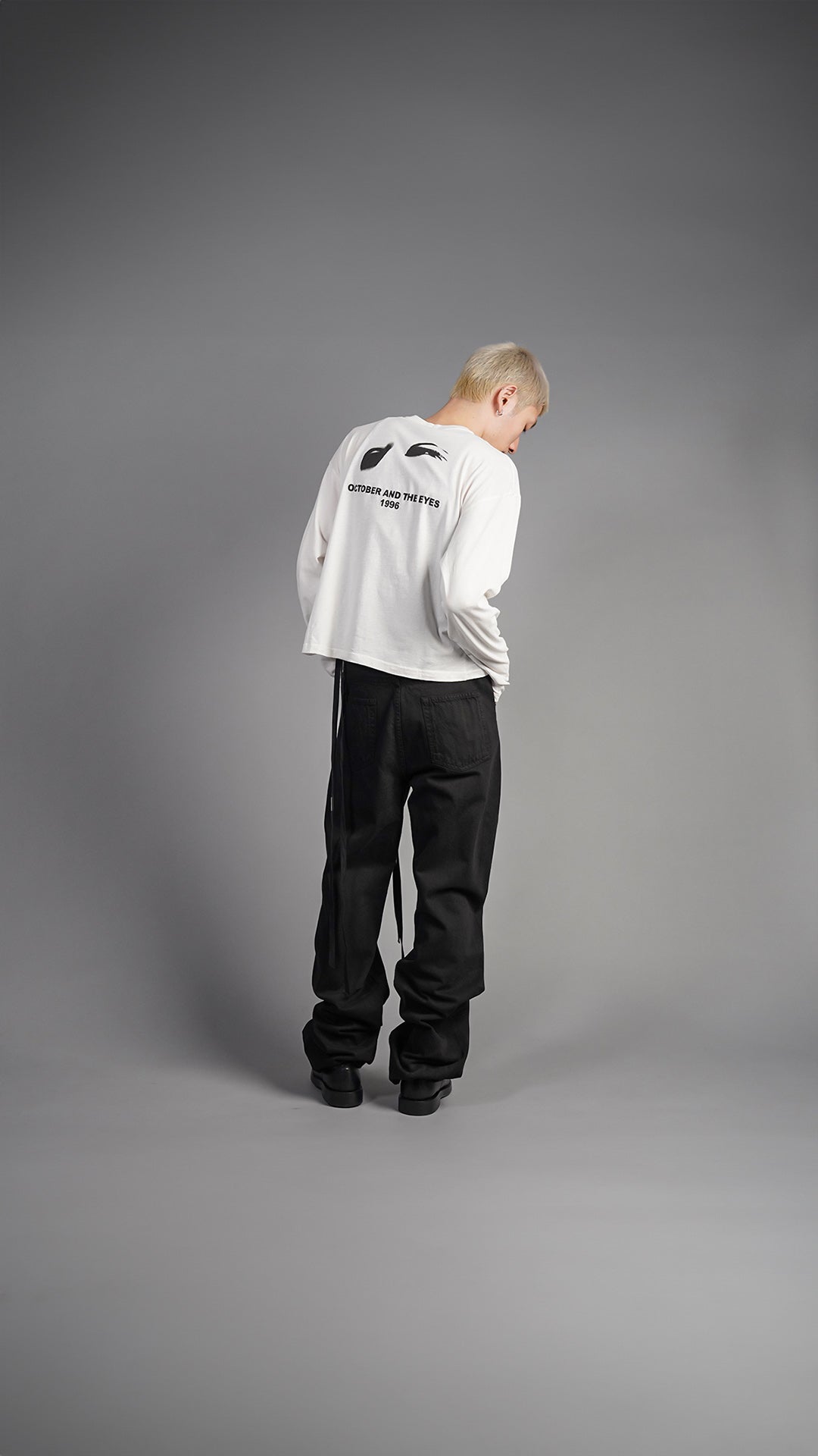 SIZE : 44=ウエスト幅38.5cm-股上40cm-股下87cm-渡り幅31cm-裾幅23.5cm-総丈121cm