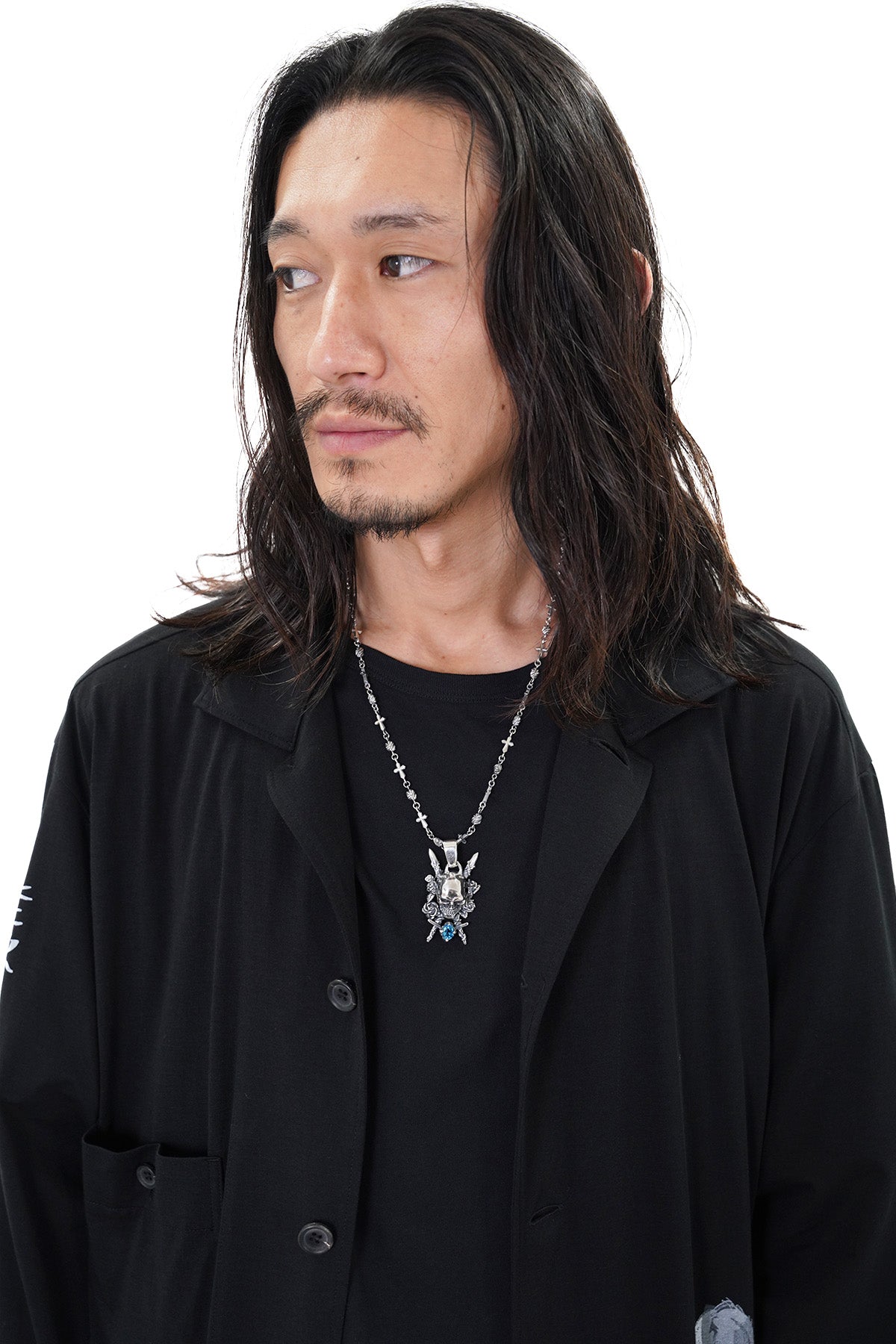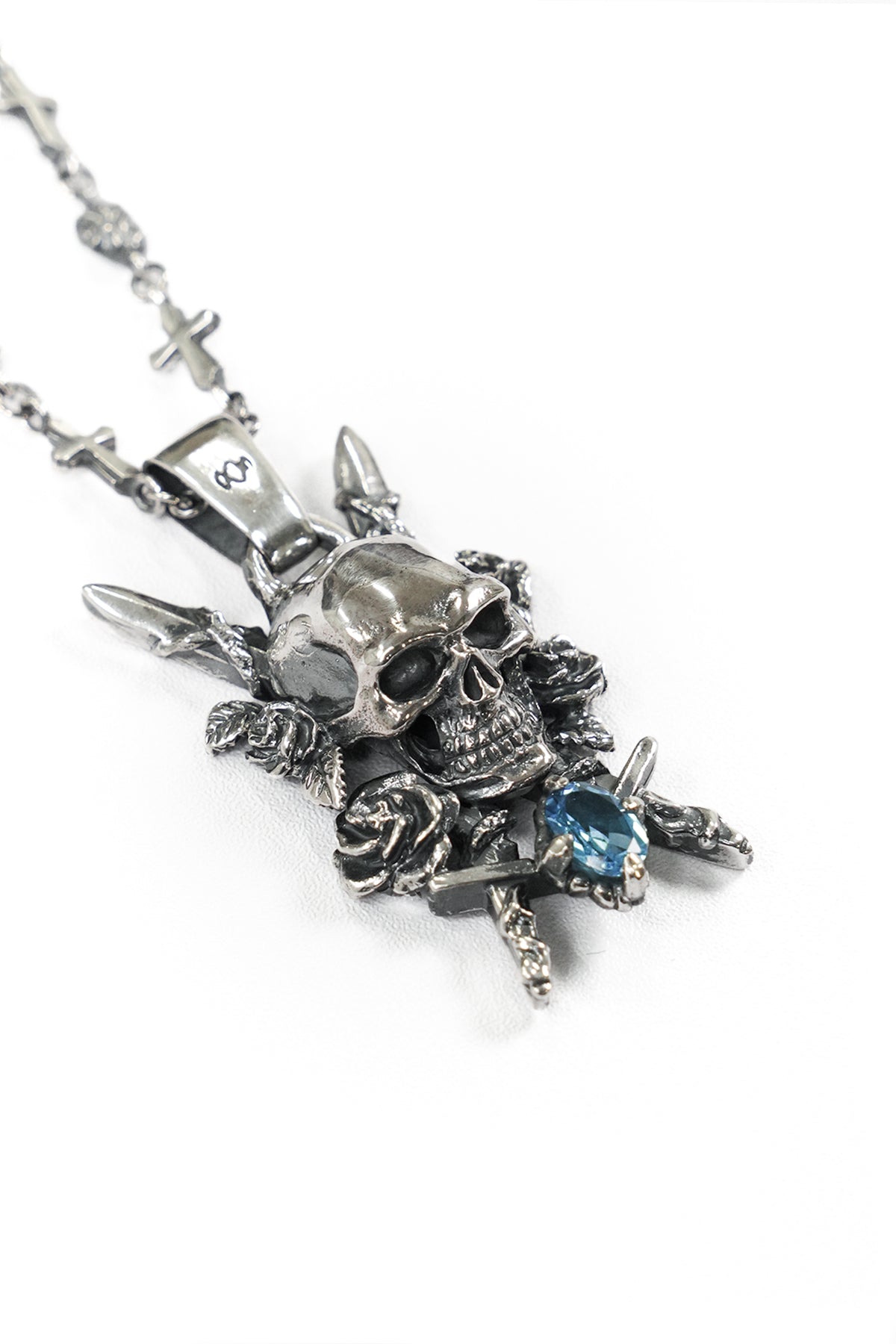 SILVER950/BLUE TOPAZ SCULL ROSE DAGGER PENDANT