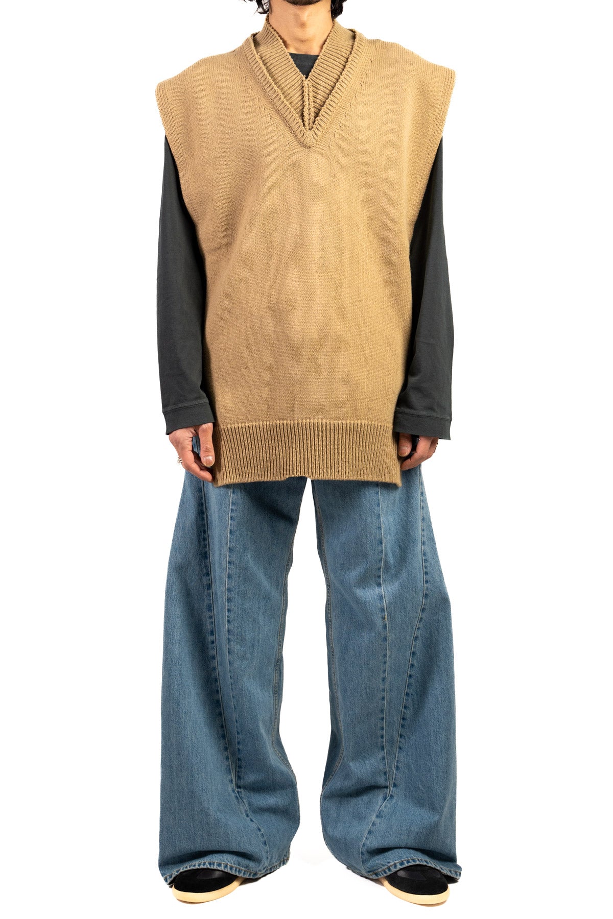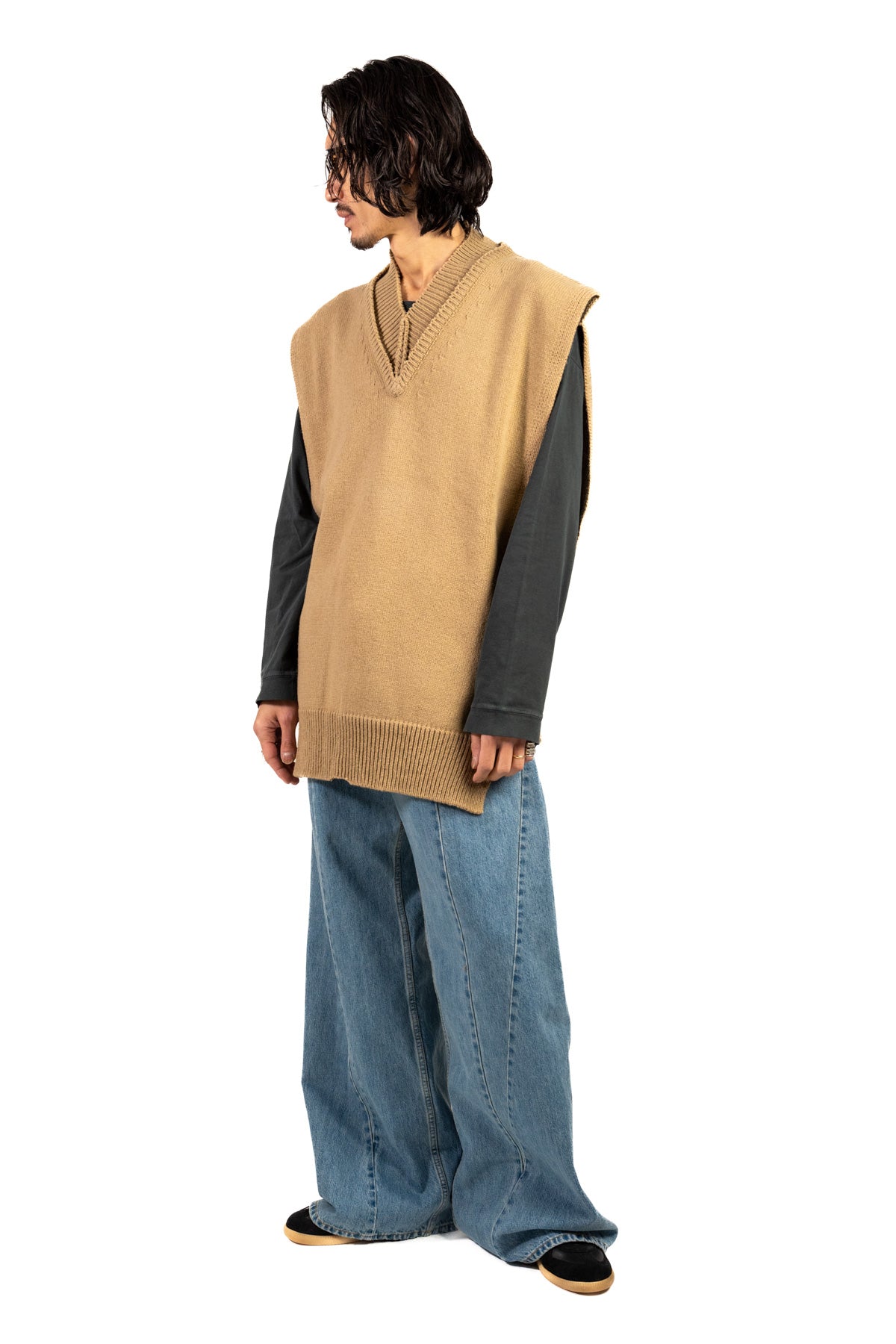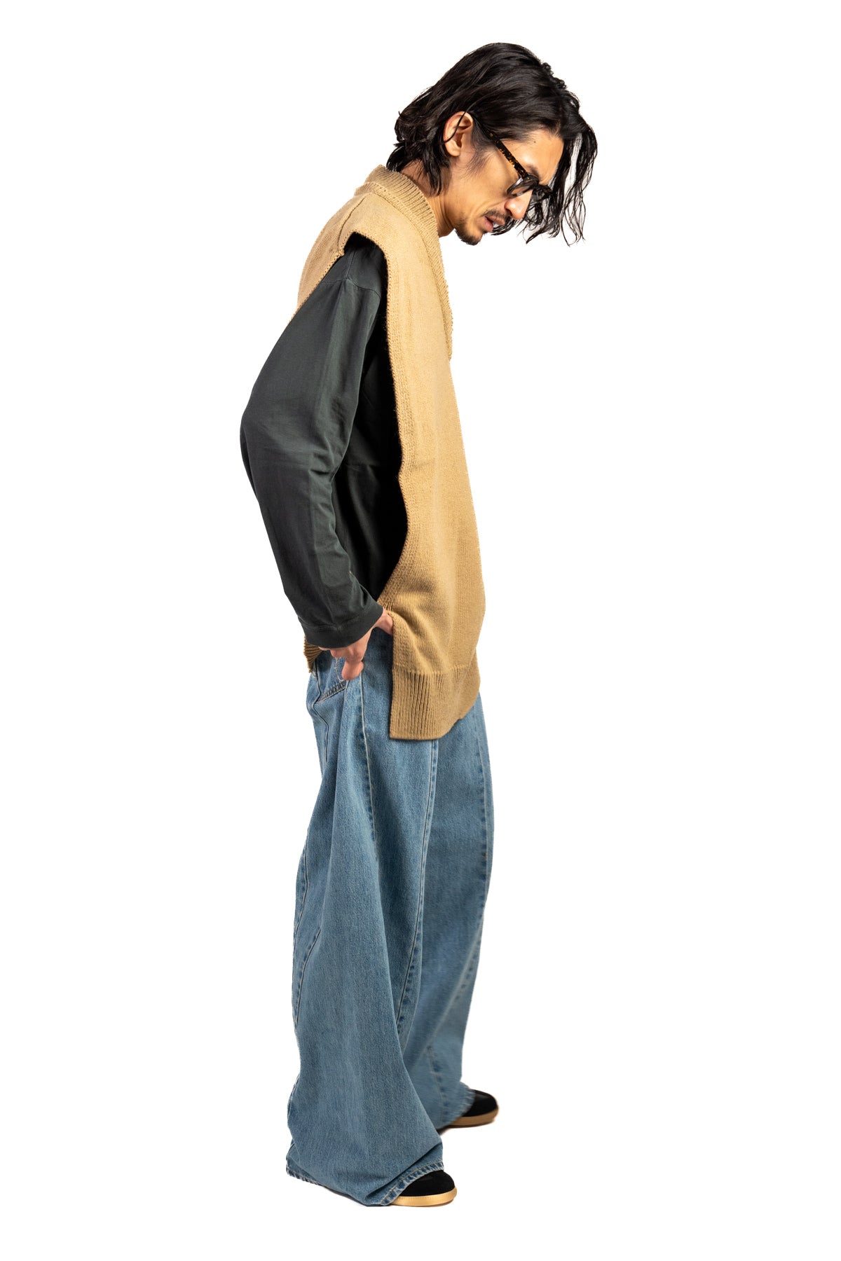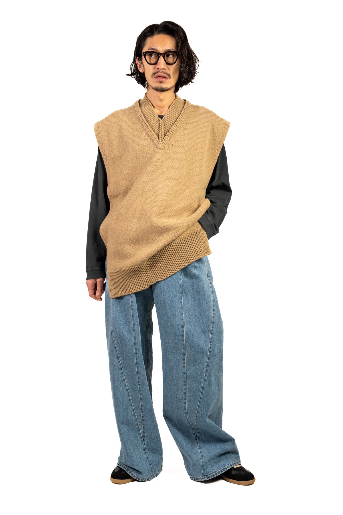 ※伸縮性のある素材は伸ばさない状態で測っておりますが、着用時のイメージは体形によって異なる事もあります。