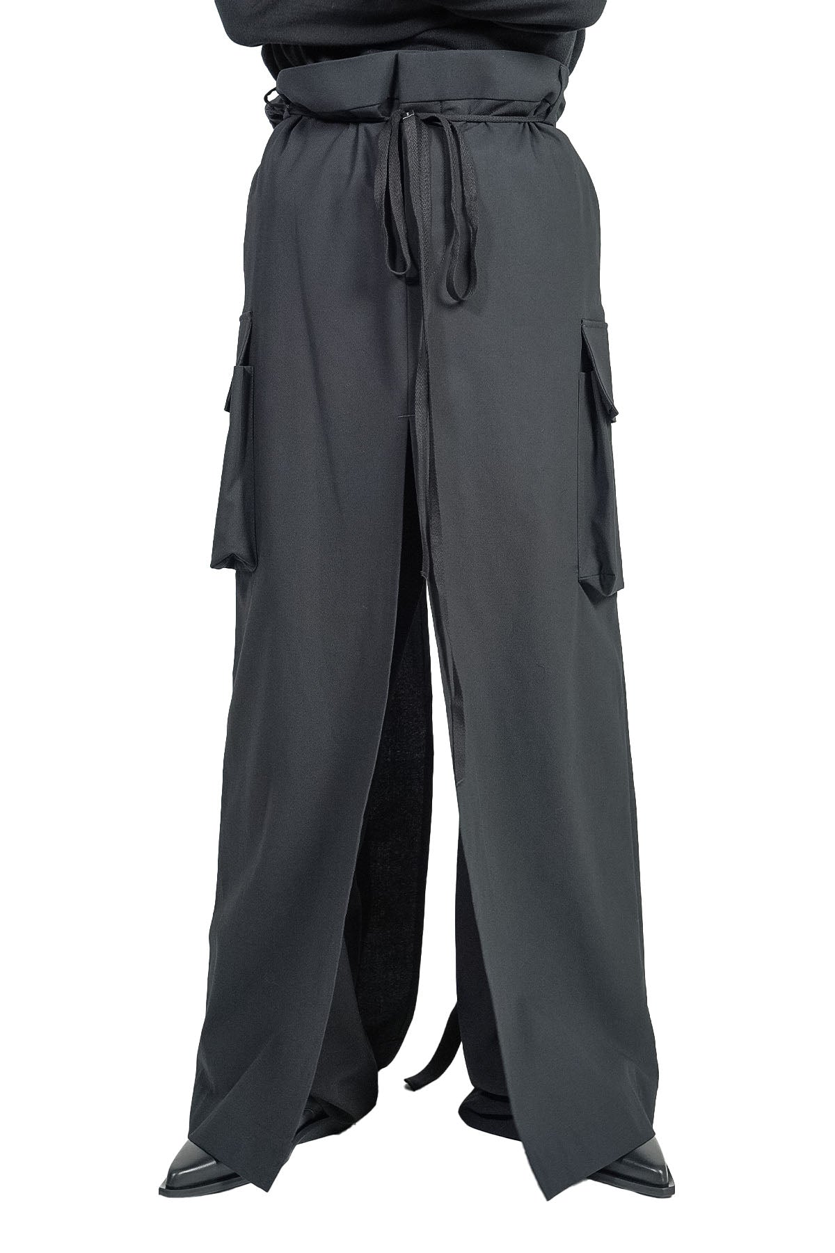 SIZE : 44=ウエスト幅52.5cm-股上39cm-股下73cm-渡り幅28.5cm-裾幅28.5cm-総丈114cm