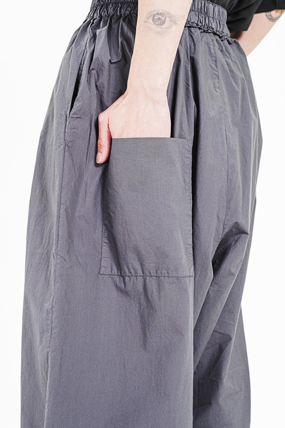 SIZE : M=ウエスト幅36cm-股上48.5cm-股下50cm-わたり幅49cm-裾幅31.5cm-総丈92cm