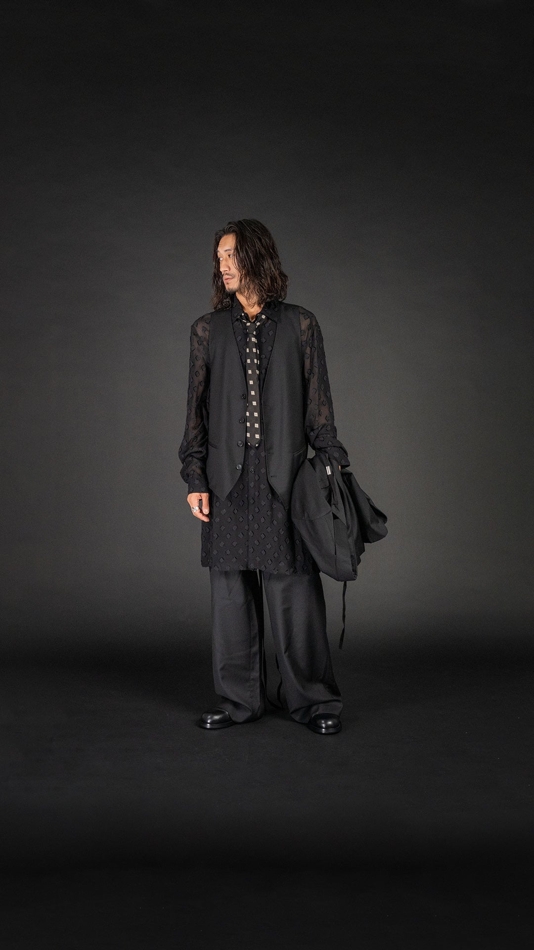 SIZE : 46=肩幅46cm-身幅52cm-着丈75cm-袖丈69cm