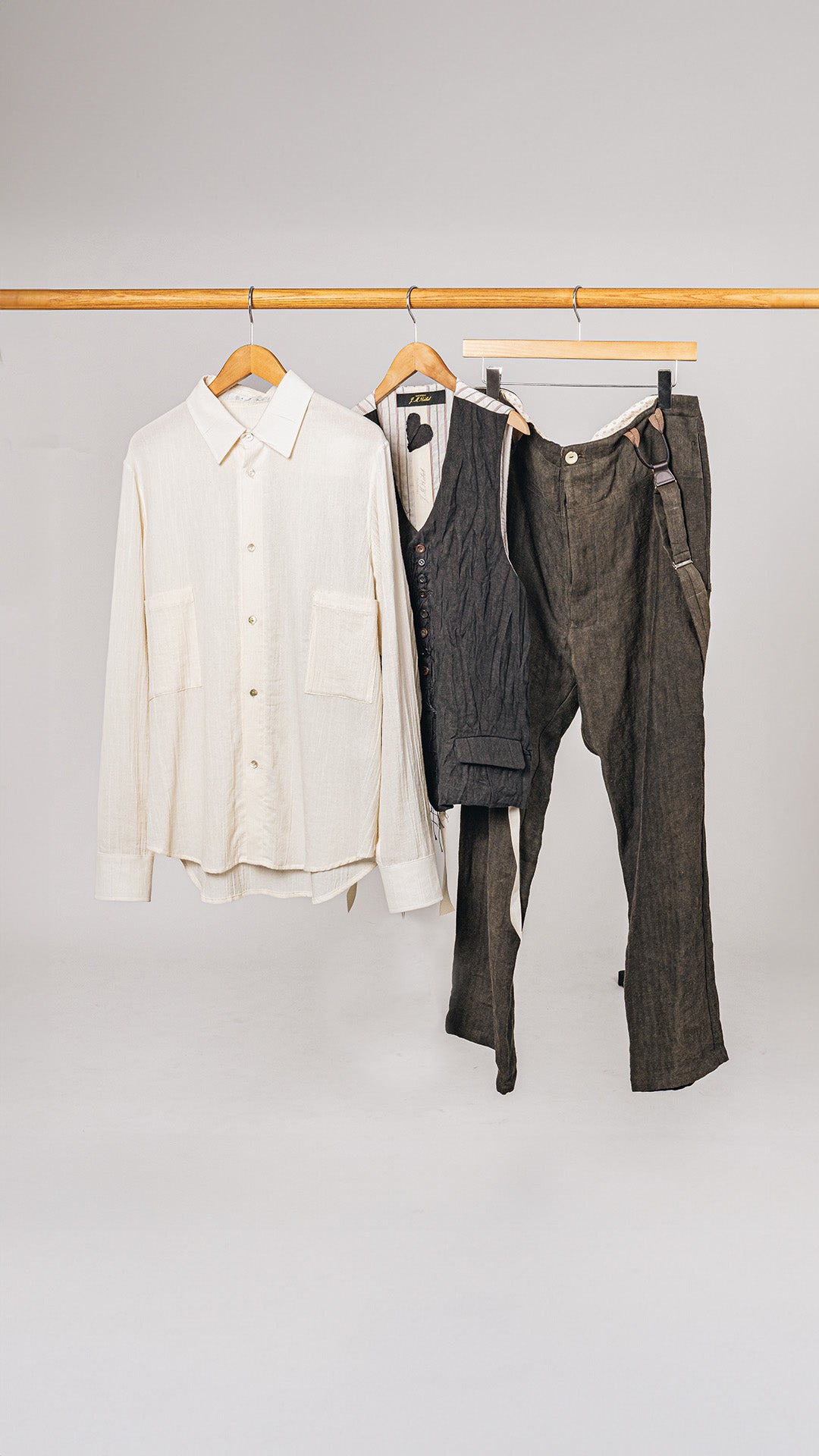 SIZE : S=肩幅44cm-身幅53.5cm-袖丈68cm-着丈75.3cm