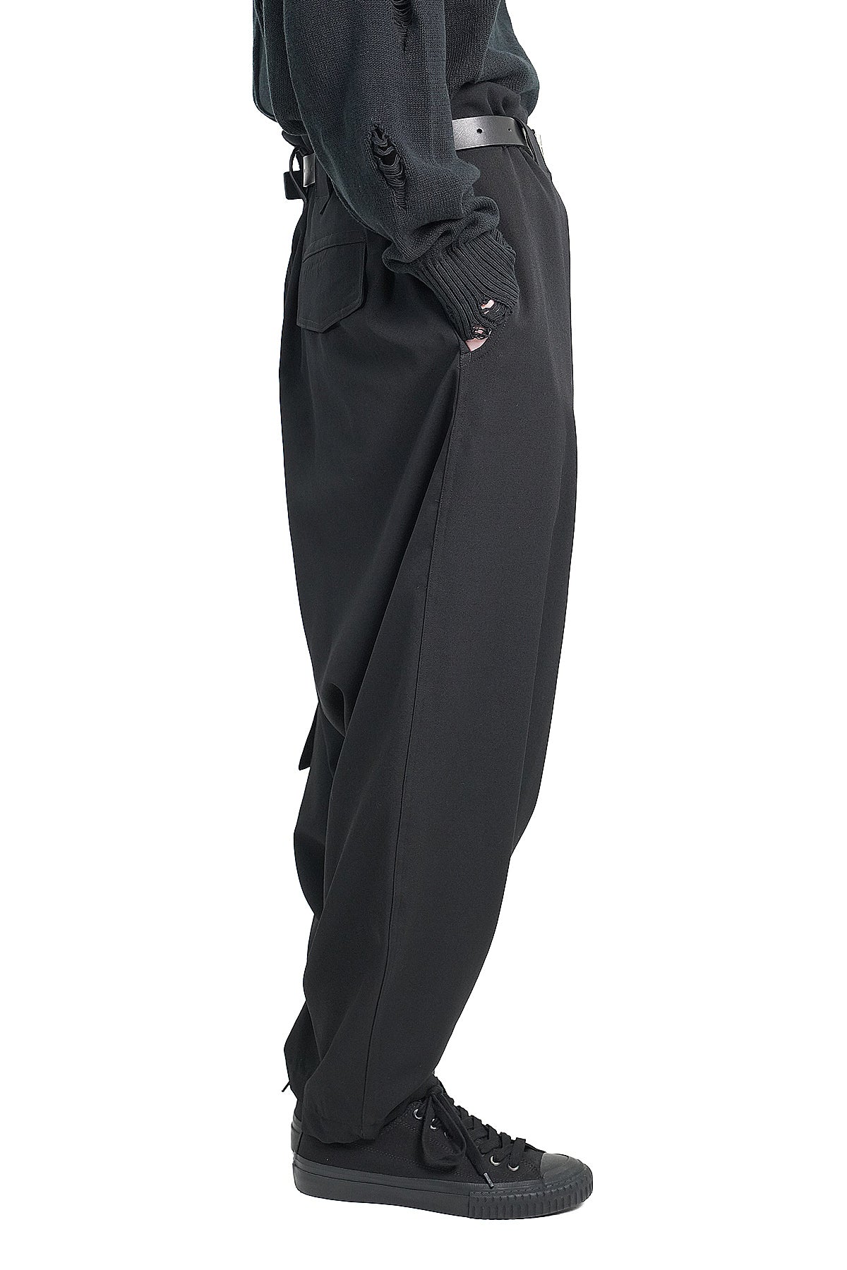WOOL GABARDINE LEFT SIDE POCKET PANTS