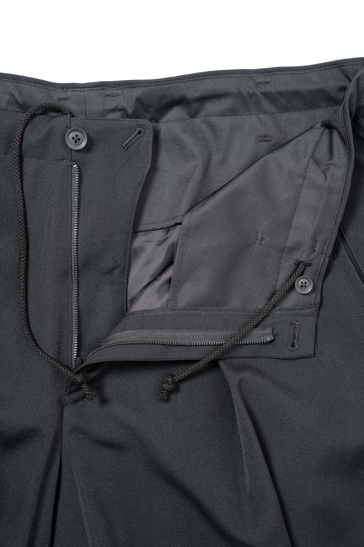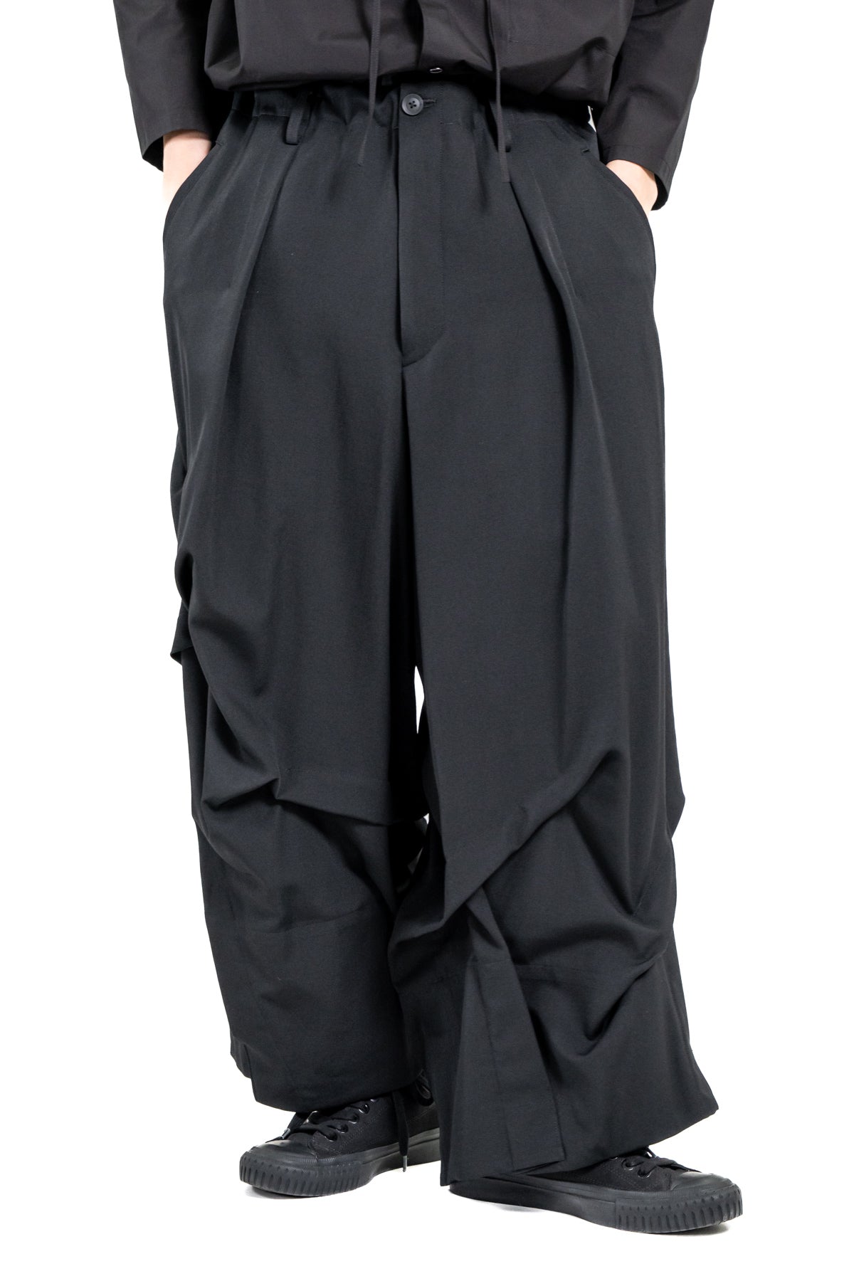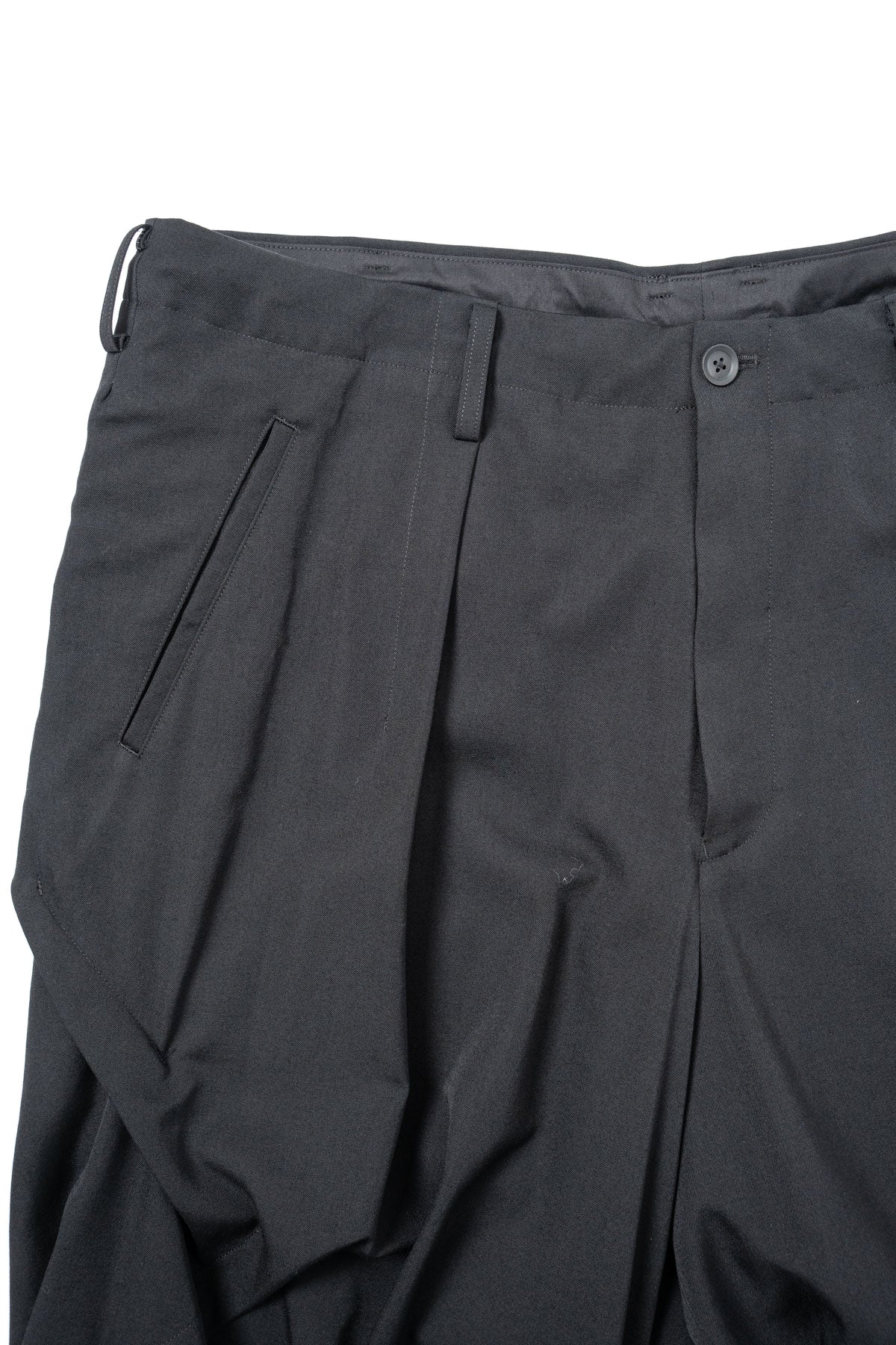 WOOL GABARDINE RANDOM TUCKS WIDE PANTS