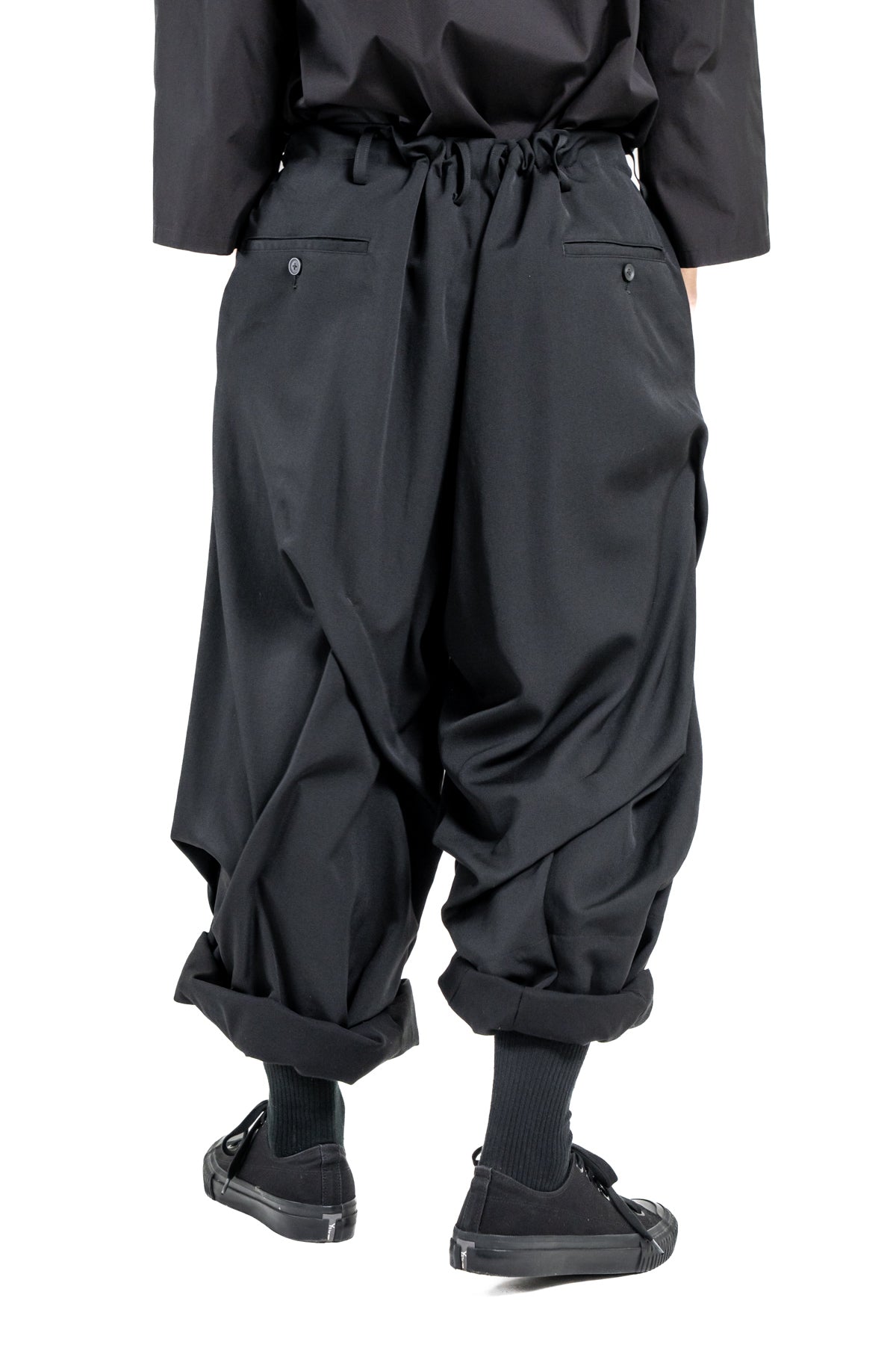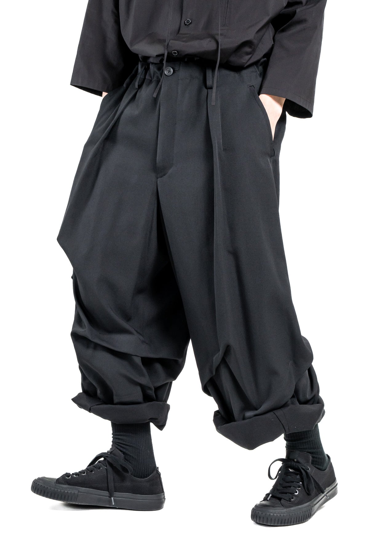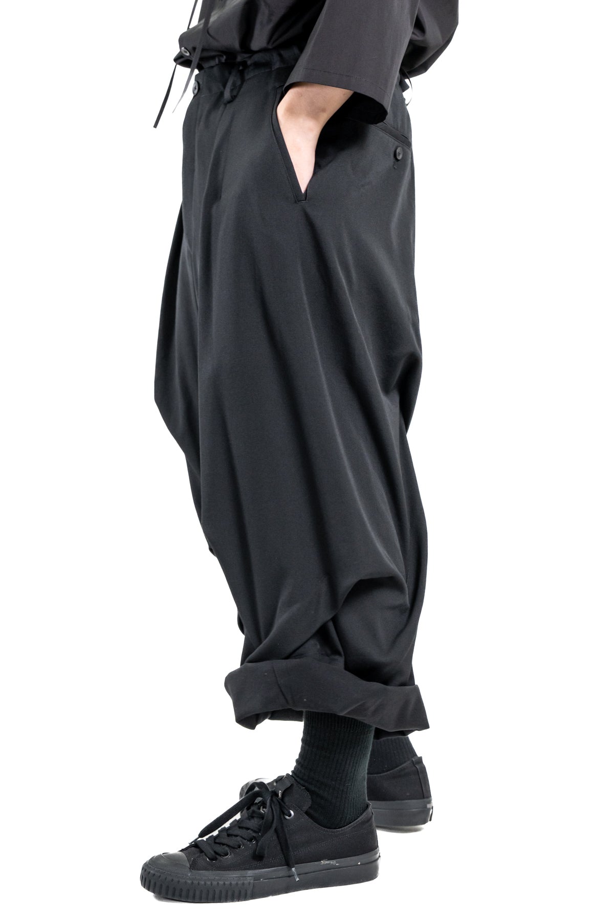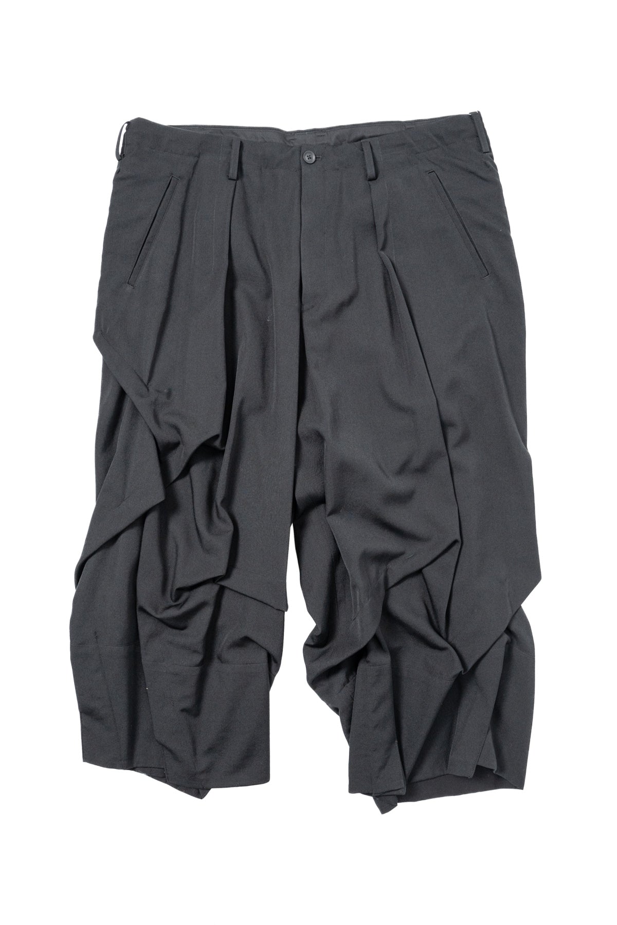 WOOL GABARDINE RANDOM TUCKS WIDE PANTS